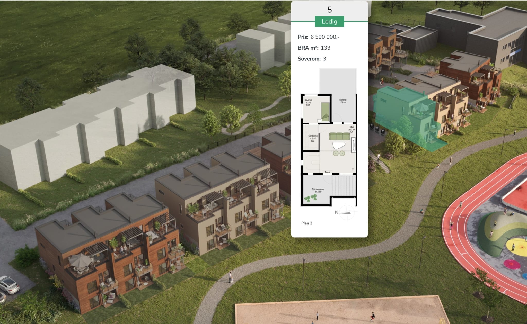 Husene er energieffektive med god standard og smarte løsninger. Bakkedalen ligger solrikt og vestvendt ved store grøntområder.