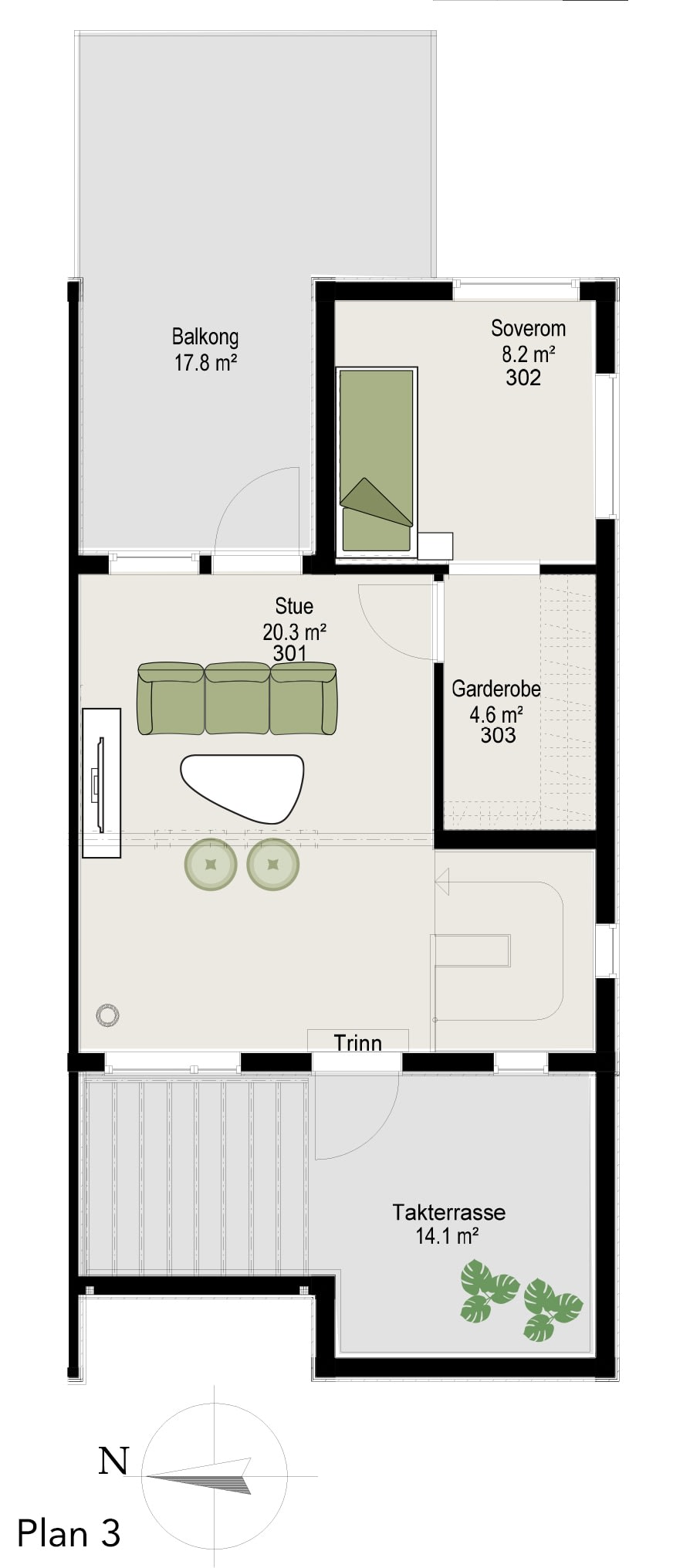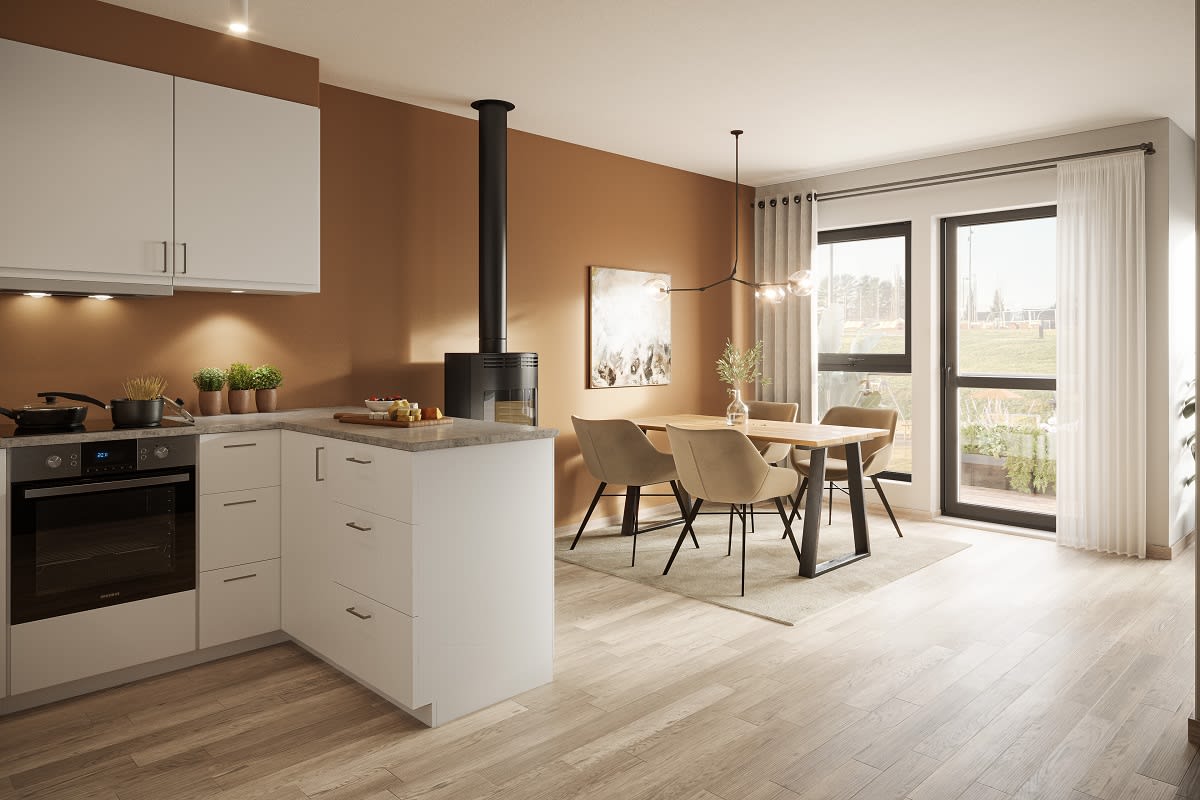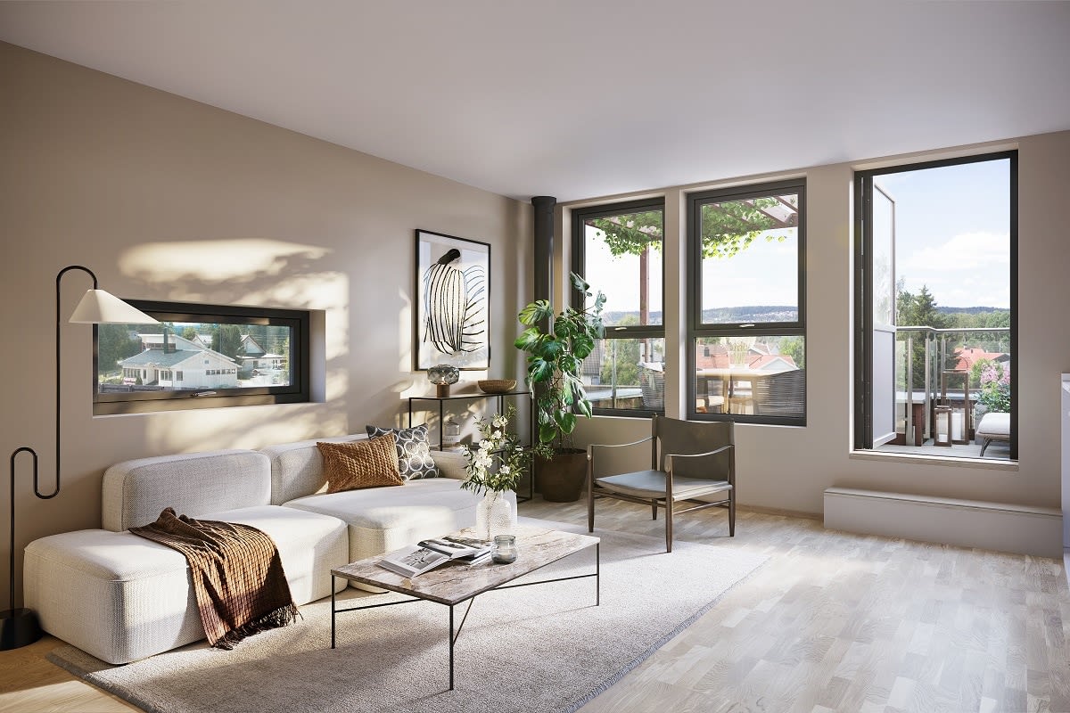 En trivelig bolig over 3 plan med lys stue og kjøkkenløsning med utgang til balkong. Boligen har 3 soverom, innvendig og utvendig bod, samt 2 flotte flislagte bad. I boligens øverste etasje er det lofttstue med utgang til solrik uteplass i begge himmelretninger. Noen endeboliger har ekstra vinduer på gavl, se plantegninger i prospekt.