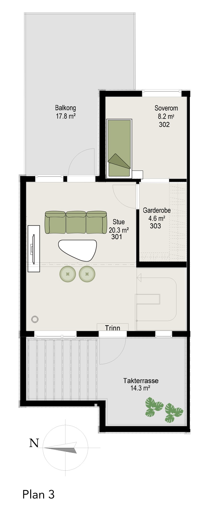 En trivelig bolig over 3 plan med lys stue og kjøkkenløsning med utgang til balkong. Boligen har 3 soverom, innvendig og utvendig bod, samt 2 flotte flislagte bad. I boligens øverste etasje er det lofttstue med utgang til solrik uteplass i begge himmelretninger. Noen endeboliger har ekstra vinduer på gavl, se plantegninger i prospekt.