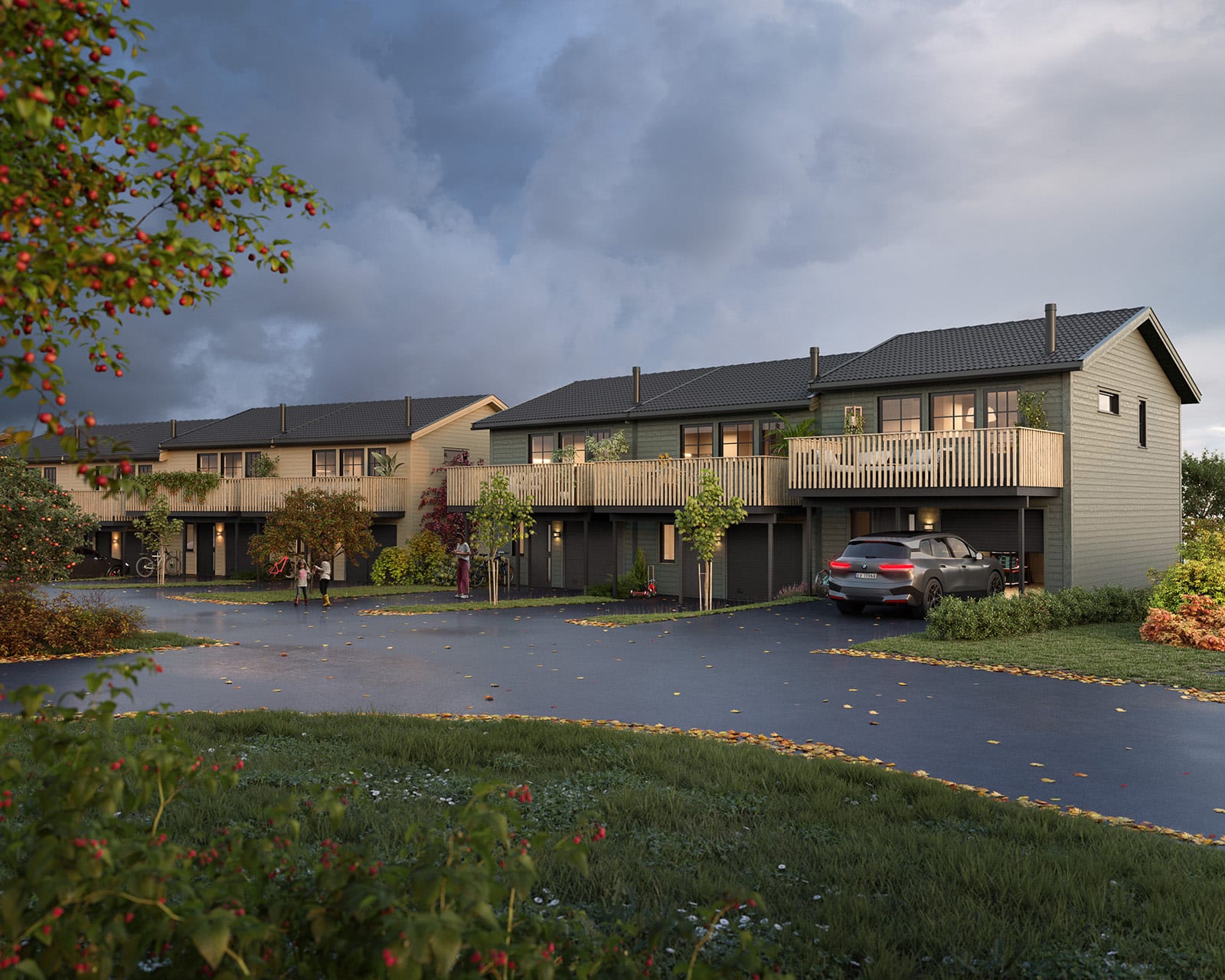 Dette konseptet muliggjør at flere får anledning til å oppfylle boligdrømmen sin. Velg mellom moderne leiligheter med 1 til 3 soverom og fine flislagte bad. De største leilighetene får også en koselig peisovn. Alle boligene får private uteplasser å nyte fritiden på.