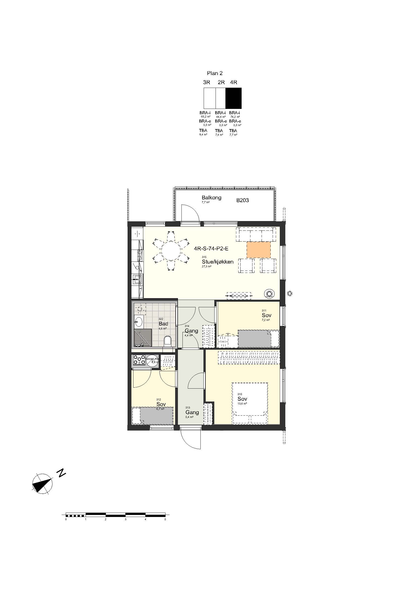 Denne leilighetstypen leveres med 3 soverom og lekkert flislagt bad. Kjøkkenet er fra HTH med integrerte hvitevarer. Her får du plassen du trenger for å dekke et koselig spisebord.