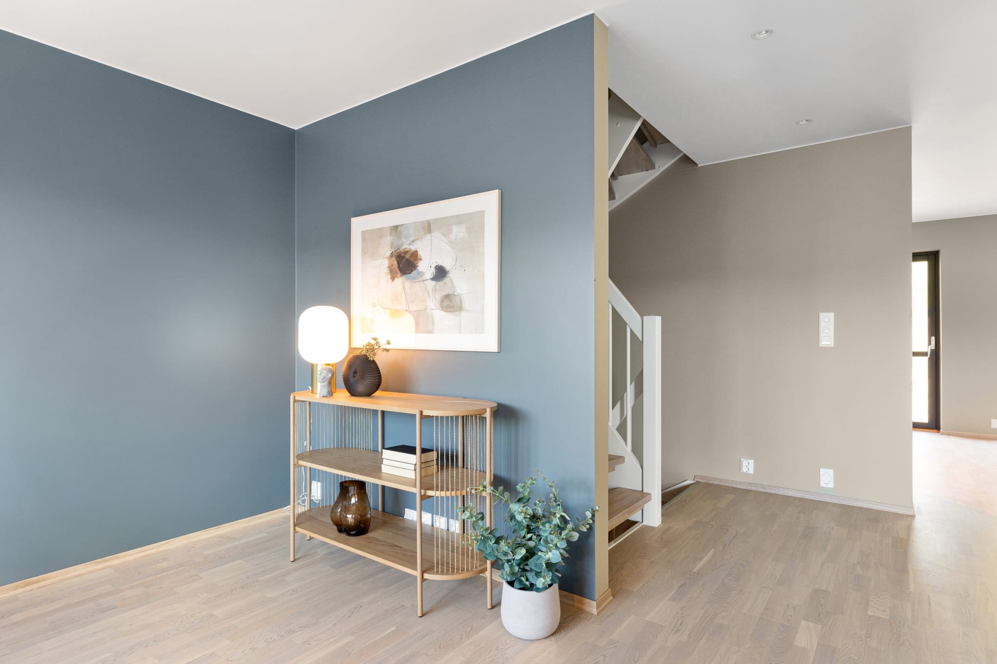 Er du nysgjerrig på rekkehusene i Elvenglia og har lyst til å se hvordan de blir? Vi har akkurat innredet en lekker tilsvarende bolig i Nitteberglia på Kjeller. Her kan du kjenne lukten av en splitter ny bolig, se standardleveranse og få inspirasjon til gode tilvalgsløsninger. Boligen er malt i delikate nyanser. Kom og få godfølelsen!