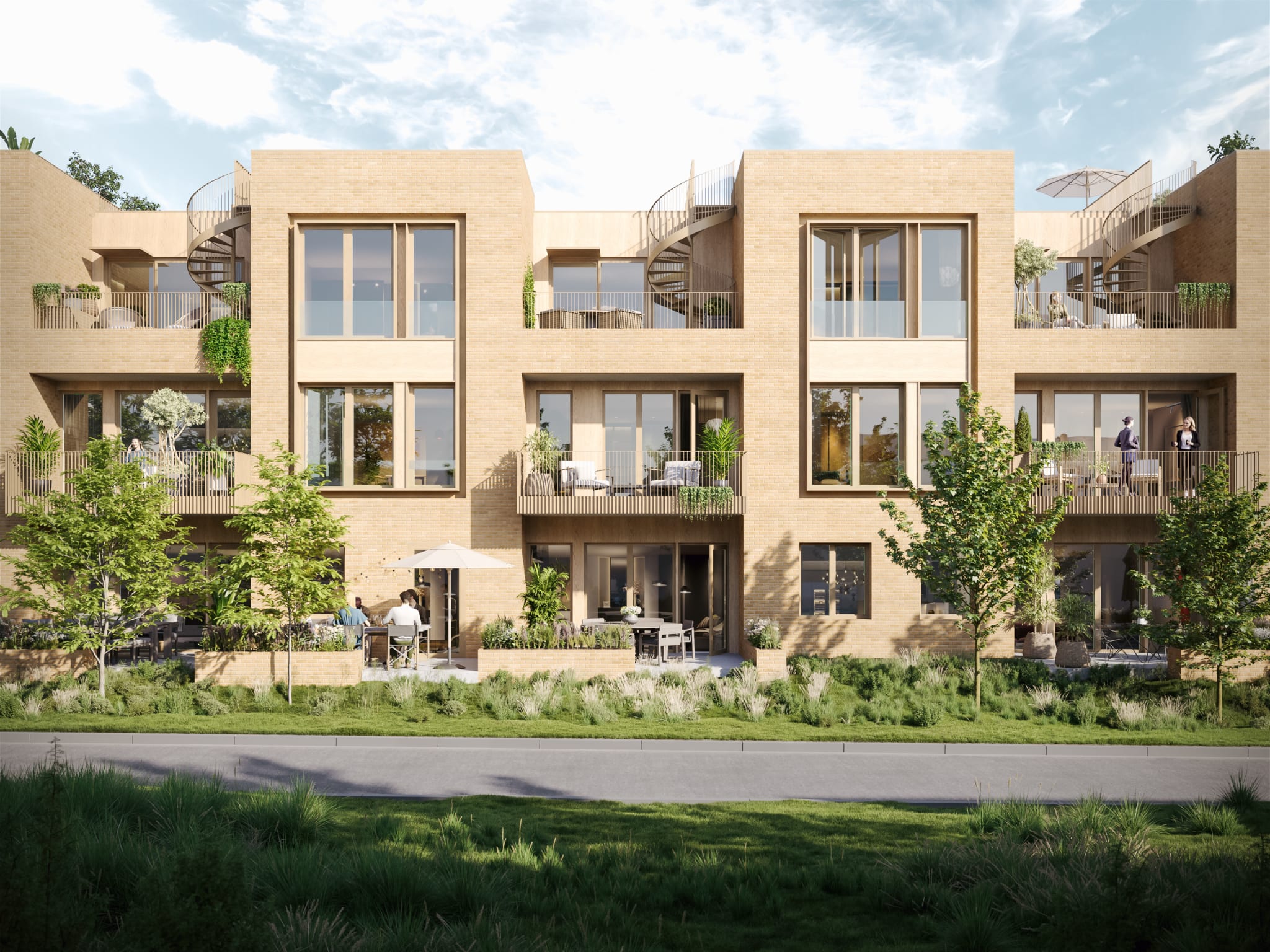 På motsatt side består nesten hele veggen av fransk balkong, så her er det bare å slippe dagen inn i den åpne stue- og kjøkkenløsningen. Herfra ser du rett ut i Sagaveien, en rolig og tilbaketrukket gate uten særlig trafikk.