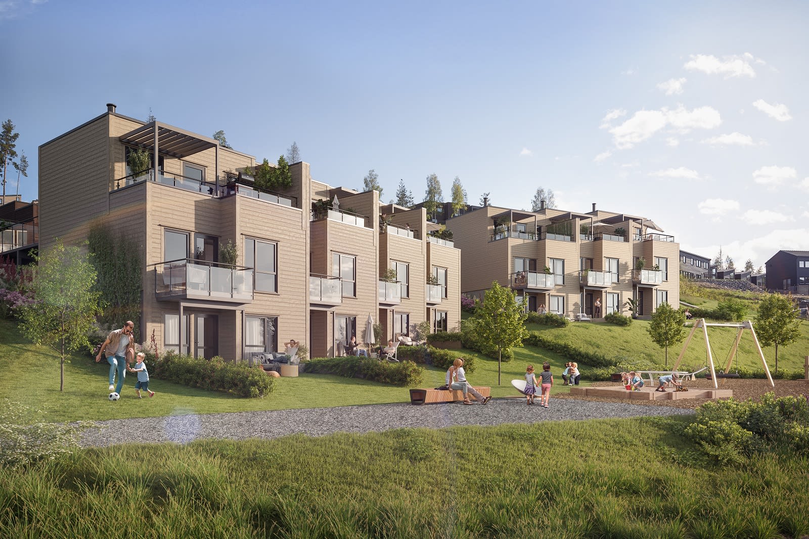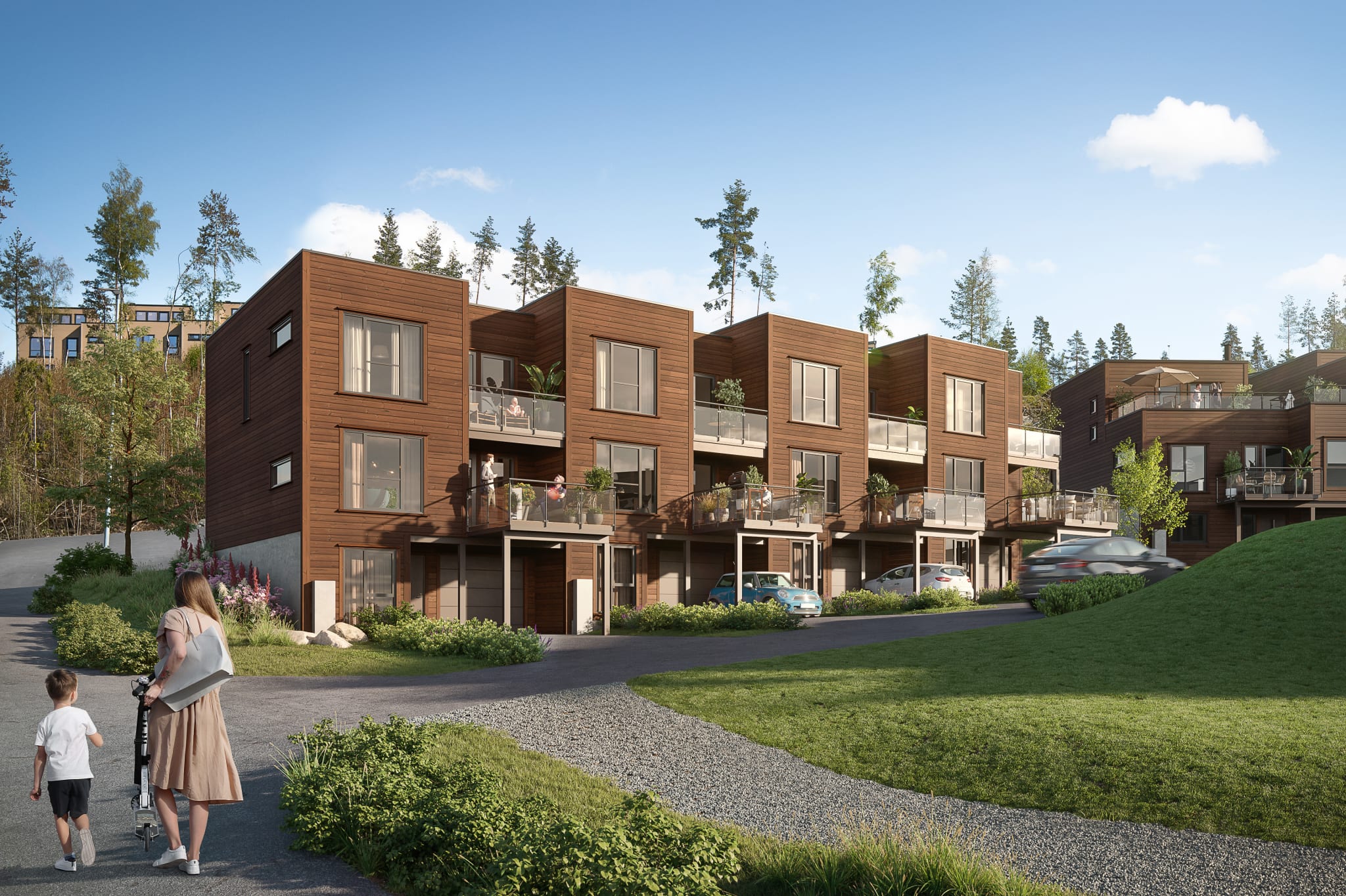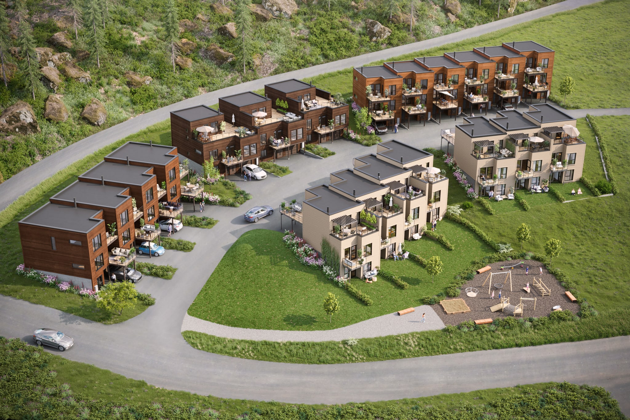 Boligene får god standard, gjennomtenkte planløsninger, nye lekre bad og romslige uteplasser. Bilen plasserer du i egen garasje eller carport tilknyttet boligen. Det blir grønt og trivelig med lekeplasser og sosiale møteplasser utenfor boligene. På Granåstoppen skal det være godt å bo for både liten og stor!