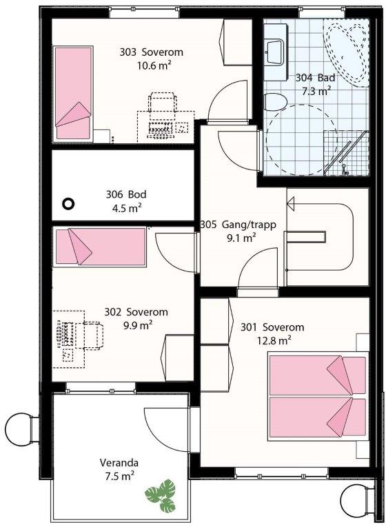 En romslig boligmodell over tre etasjer. Garasje og sportsbod er inkludert. To separate bad, samt vaskerom. Med 4 soverom så er det god plass til hele familien og mulighet for hjemmekontor. Sykkelparkering og to gode verandaer på 12,0 og 7,5 m2. Åpen stue og kjøkkenløsning over et helt plan gir boligen en god luftig følelse av stor plass.