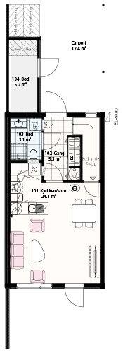 En av våre minste, men også svært populære boligmodell. Her får man mye for pengene. I plan 1 finner du stue, kjøkken og et fullverdig bad. I plan 2 er det 3 soverom og en WC. Som et tilvalg kan WC oppgraderes til bad med fliser og dusj.