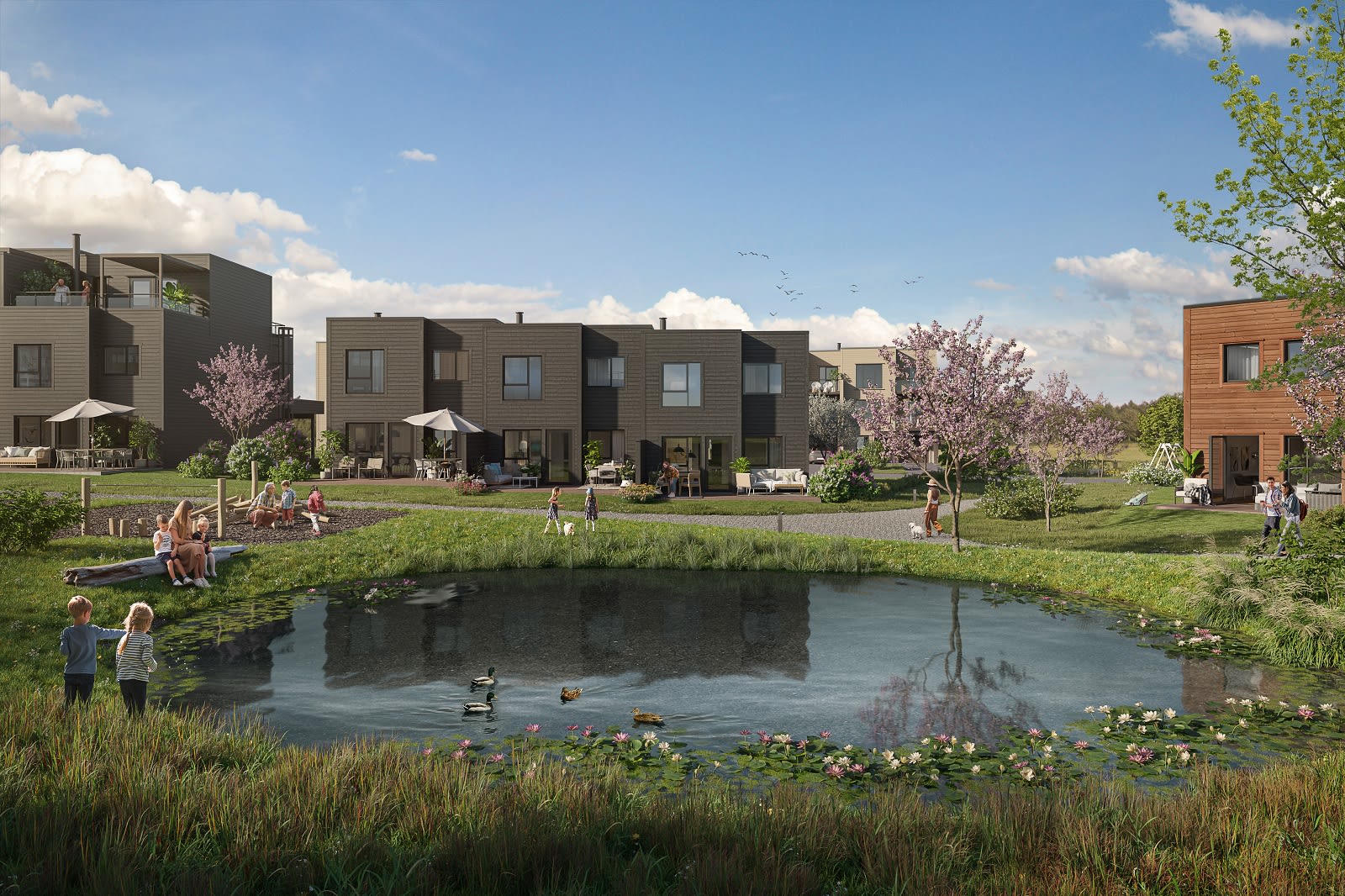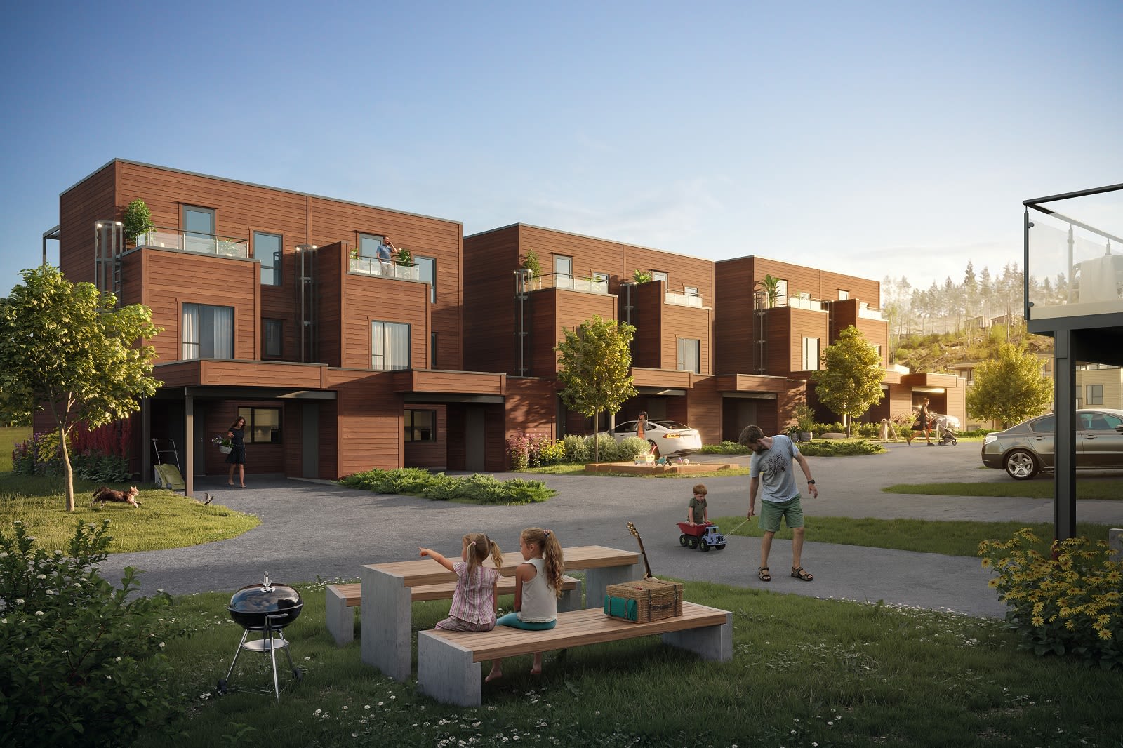 En fin, romslig boligmodell over tre etasjer. Garasje og sportsbod er inkludert. To separate bad, samt vaskerom. Med 4 soverom så er det god plass til hele familien og mulighet for hjemmekontor.
