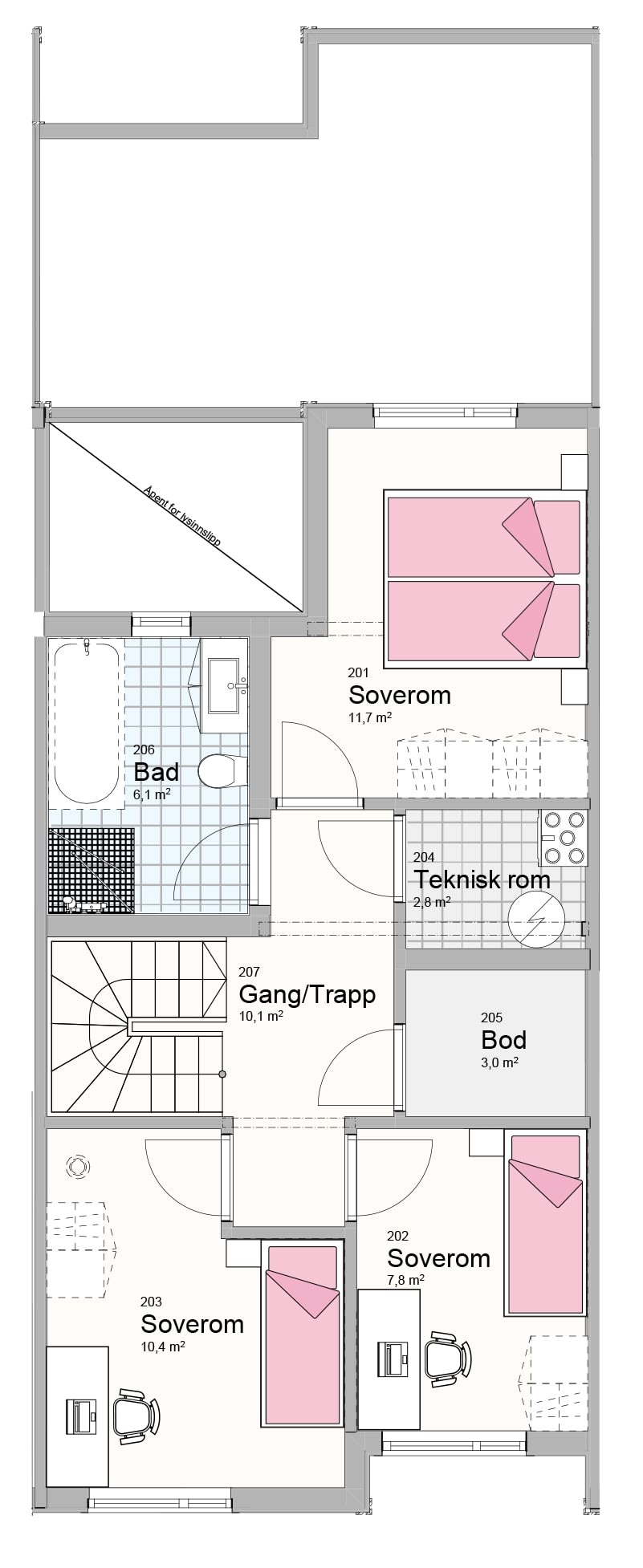 En fin effektiv boligmodell med 3 soverom på samme flate, samt praktisk bodløsning både ute og inne. Boligen har 2 pent flislagte baderom og romslig oppholdsrom med peisovn. Separat kjøkken med plass til spisebord. Boligen får gode lysforhold med store glassflater. Carport utenfor boligen.