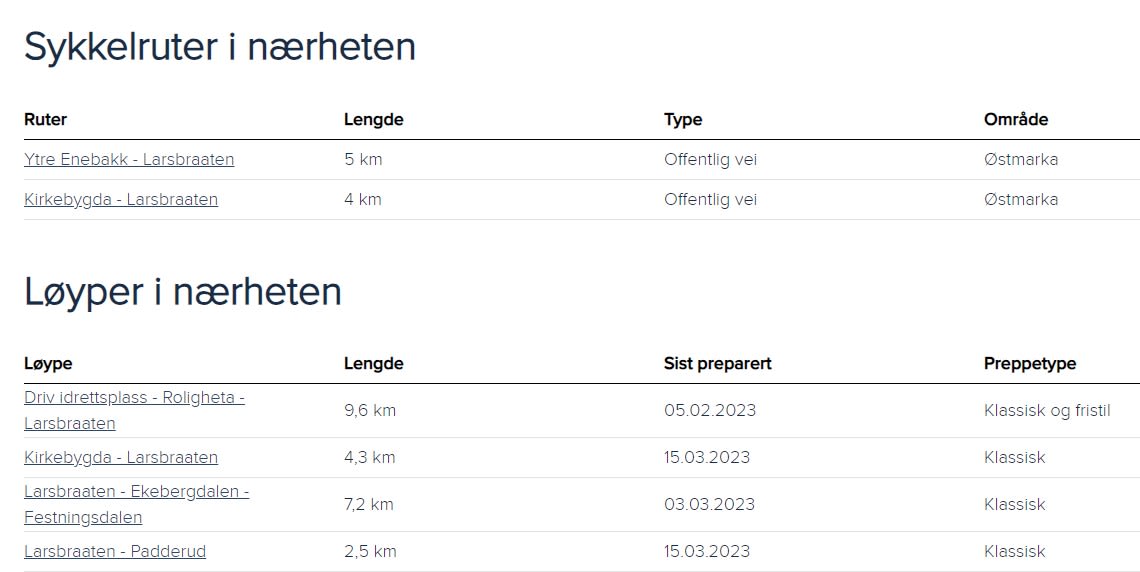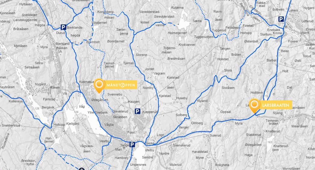 Skiløypene går innom Larsbraaten vinterstid. Da er det åpen skistue der man kan kjøpe vafler, kanelsnurrer, gulrotkake, kakao med krem og annet godt. Fra Drivplassen i Ytre Enebakk er det 7-8 km på oppkjørte løyper, så det er verd å legge søndagsturen hit om man kommer fra Månetoppen.