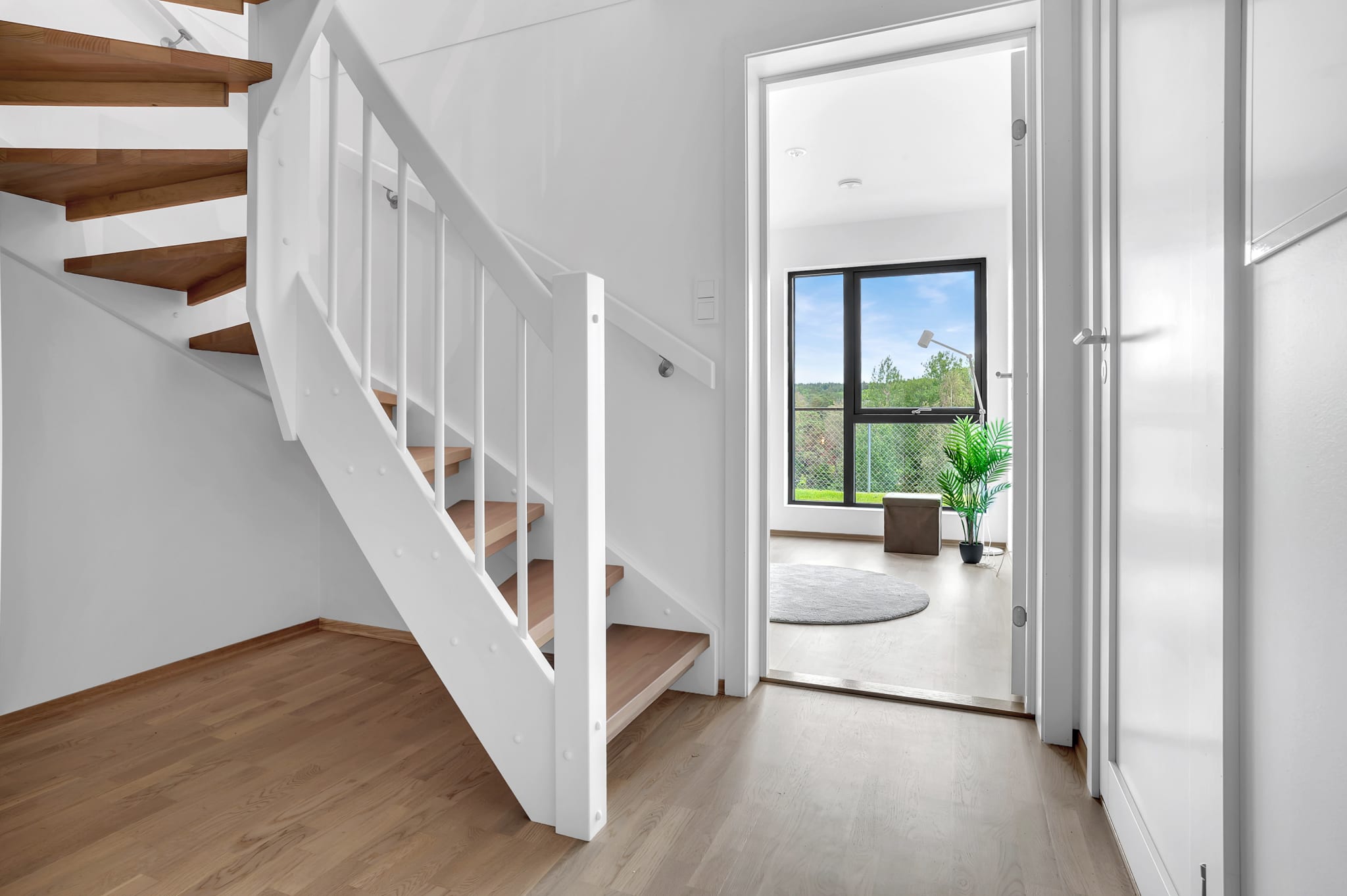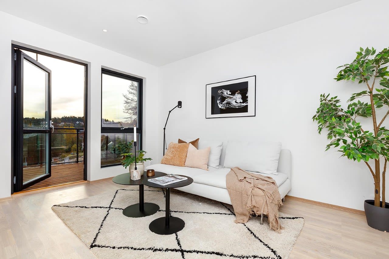 Flott, nytt rekkehus over to plan med to soverom og carport.