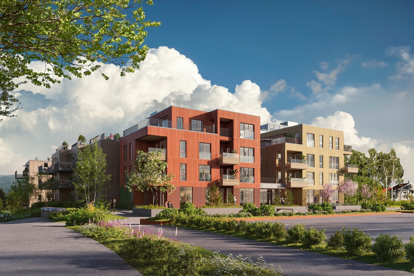 Bygningene er tenkt kledd i impregnert trevirke, og det skal benyttes ulike farger/sjatteringer. Dette gir varme, nærhet og identitet til prosjektet. Galleriganger knytter leilighetene sammen, og skaper små møteplasser mellom naboene.