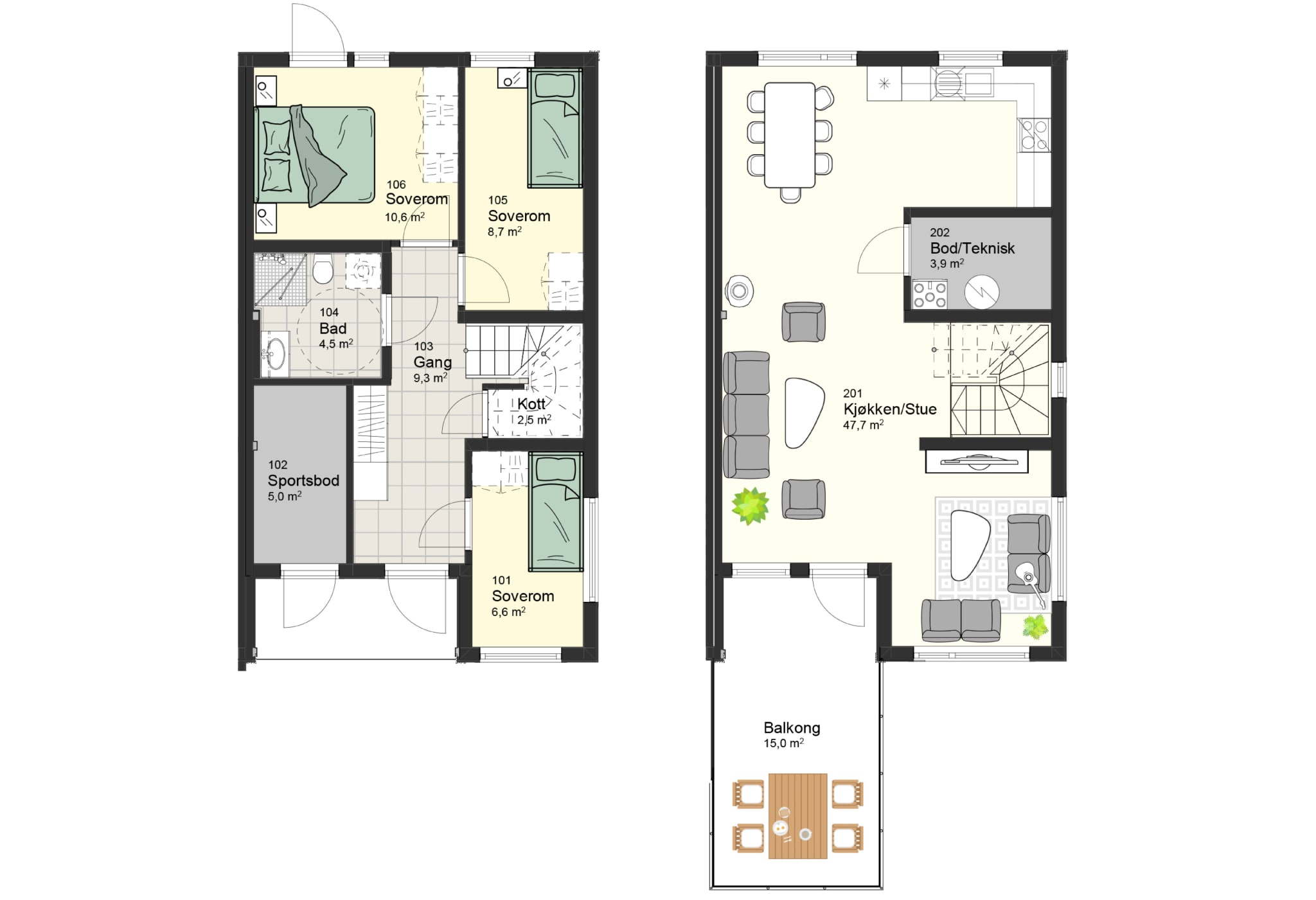 Et praktisk rekkehus med stort herlig oppholdrsom på 44 kvm. Mye lys fra store glassflater gir deg en bolig du vil trives i! Utgang til romslig balkong fra stuesiden. Boligen har 3 soverom og delikat flislagt bad. Sportsbod, kott og bodplass gir deg gode oppbevaringsmuligheter. Bilen plasserer du i praktisk carport tilknyttet boligen.