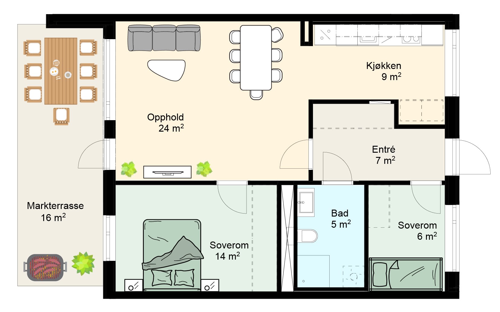 Som en bonus får du tilgang til fellesstue, felles takterrasser, drivhus og gjesteleilighet.