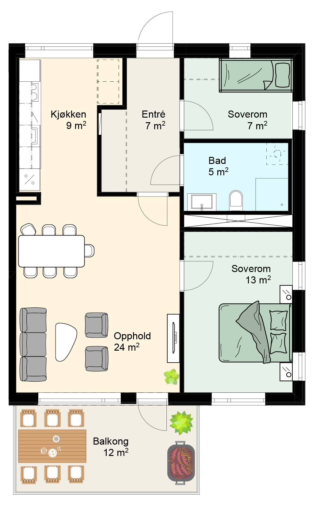 Som en bonus får du tilgang til fellesstue, felles takterrasser, drivhus og gjesteleilighet.