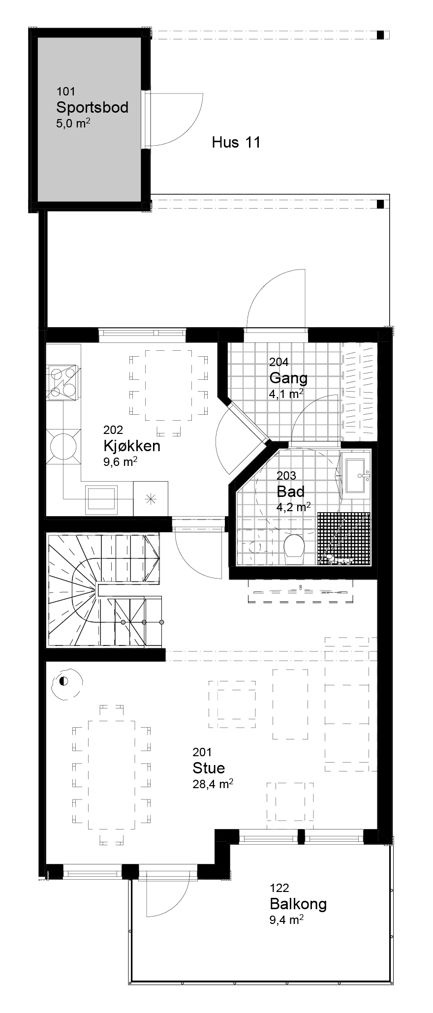 Denne trivelige tomannsboligen, med fire soverom og to separate bad, tilbyr god plass for hele familien. Store glassflater slipper inn rikelig med naturlig lys, og solrike uteplasser i alle himmelretninger gir mulighet for å nyte solen hele dagen. Boligen har separat stue og kjøkken, samt en loftsstue som gir alle i husstanden et eget sted å trekke seg tilbake. Leveransen er komplett og nøkkelferdig, inkludert peisovn og et moderne HTH-kjøkken med integrerte hvitevarer.