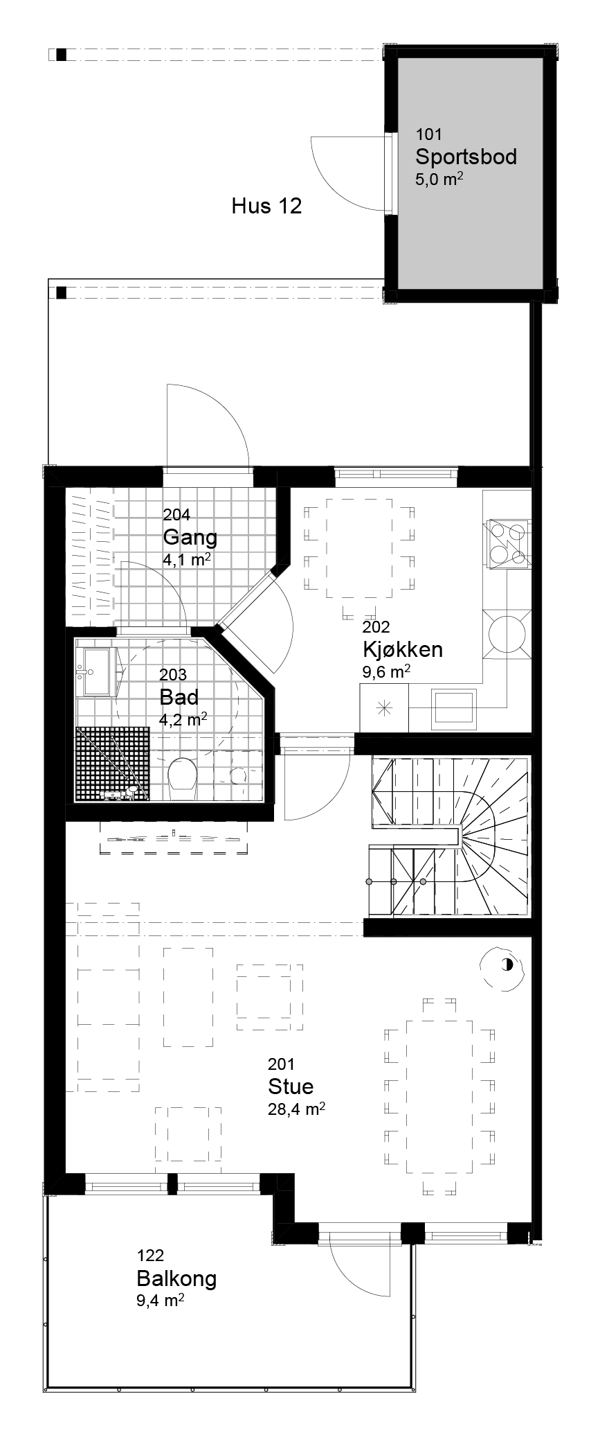 Denne trivelige tomannsboligen, med fire soverom og to separate bad, tilbyr god plass for hele familien. Store glassflater slipper inn rikelig med naturlig lys, og solrike uteplasser i alle himmelretninger gir mulighet for å nyte solen hele dagen. Boligen har separat stue og kjøkken, samt en loftsstue som gir alle i husstanden et eget sted å trekke seg tilbake. Leveransen er komplett og nøkkelferdig, inkludert peisovn og et moderne HTH-kjøkken med integrerte hvitevarer.