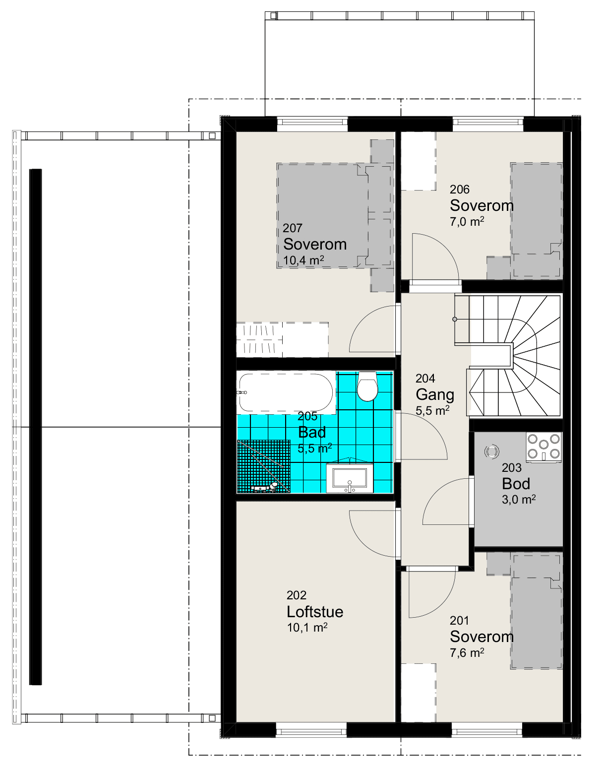 I andre etasje får du tre soverom, loftstue, lekkert flislagt baderom, samt bod og god oppbevaringsplass. En smart planløsning som passer både småbarnsfamilier og par som ønsker fleksibilitet og komfort i hverdagen.