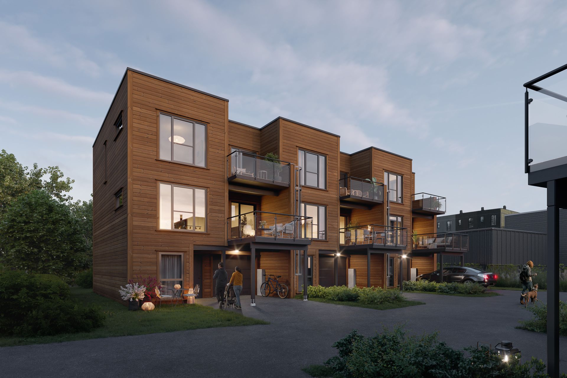 Boligene er energieffektive og har solrike uteplasser. Mellom husene blir det fine opparbeidede grøntområder.