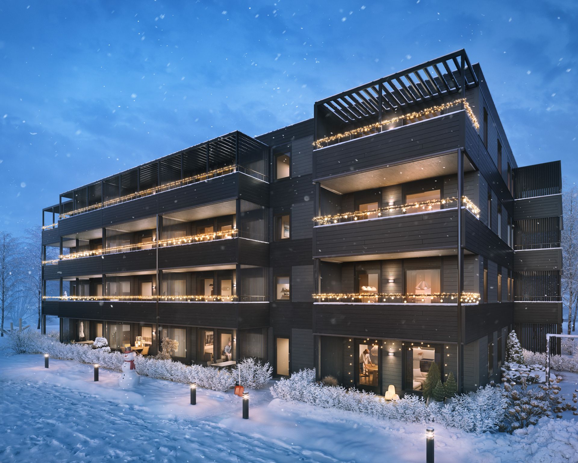 Fabeltunet får også innbydende felles uteområder, tilrettelagt for rolig opphold, uformelle møter og et godt naboskap. Her legges det vekt på trivsel, kvalitet og et levende, men balansert bomiljø – et sted det er godt å bo, året rundt.