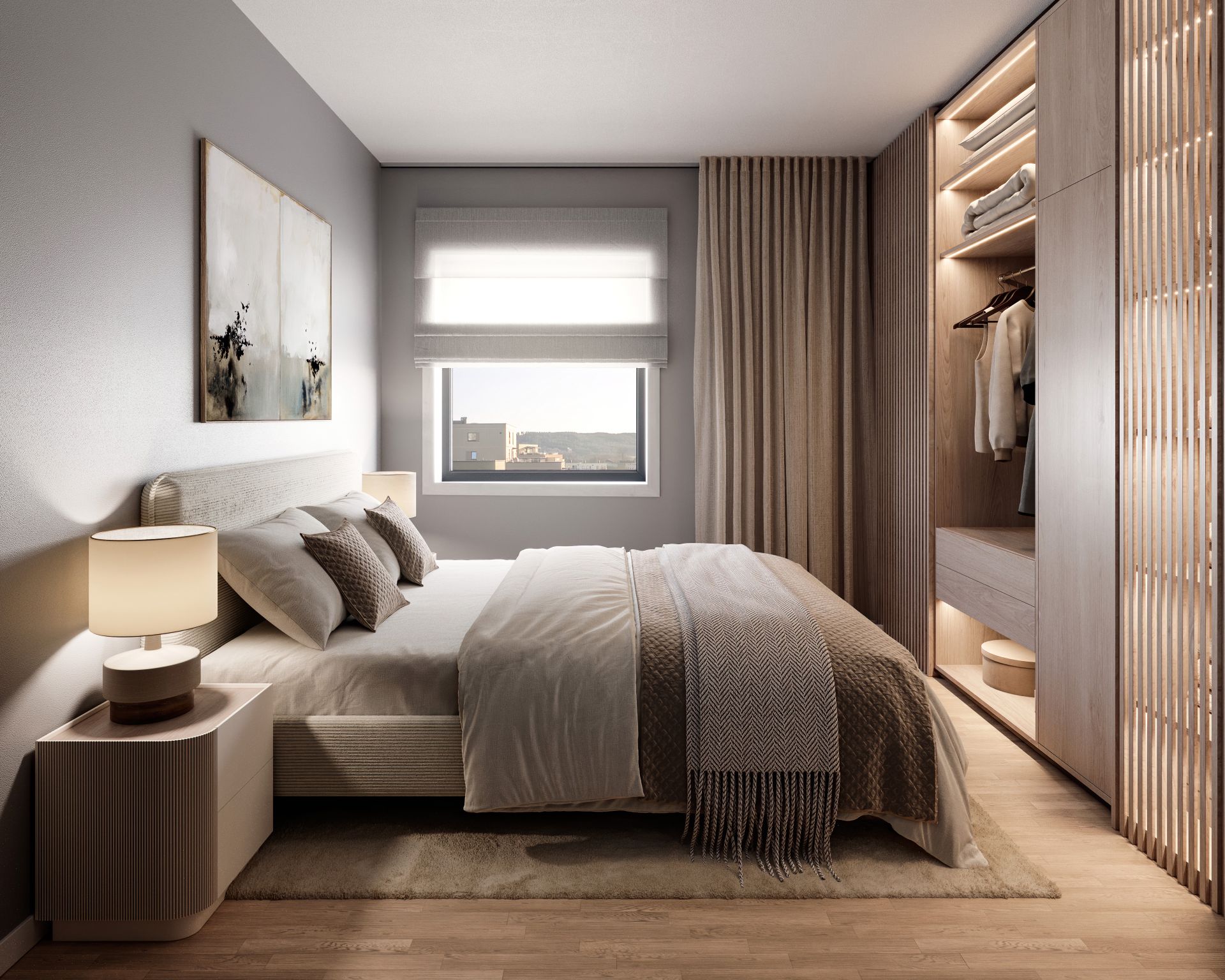 Planløsningene varierer, med mulighet for gode garderobeløsning eller et mer åpent oppholdsrom. Resultatet er fleksible leiligheter som gir deg maksimal bokomfort i en effektiv og moderne ramme.