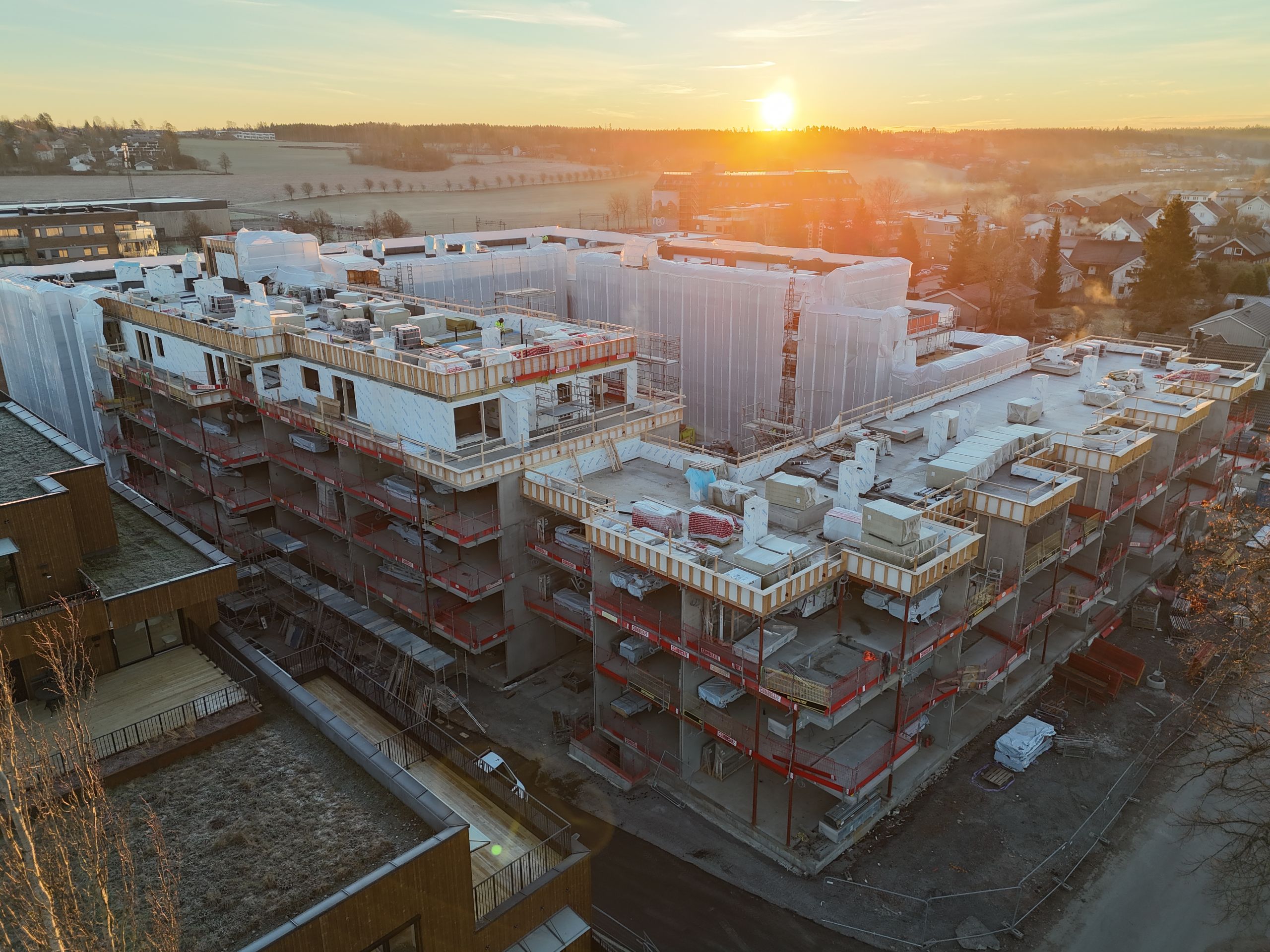 Byggearbeidene går fremover, og vi vil dele en liten status med dere. Vi takker for tålmodigheten så langt – vi vet at både støy og trafikk kan merkes. Nå som råbyggsfasen nærmer seg ferdig, vil også noe av tungtrafikken gradvis bli mindre merkbar.