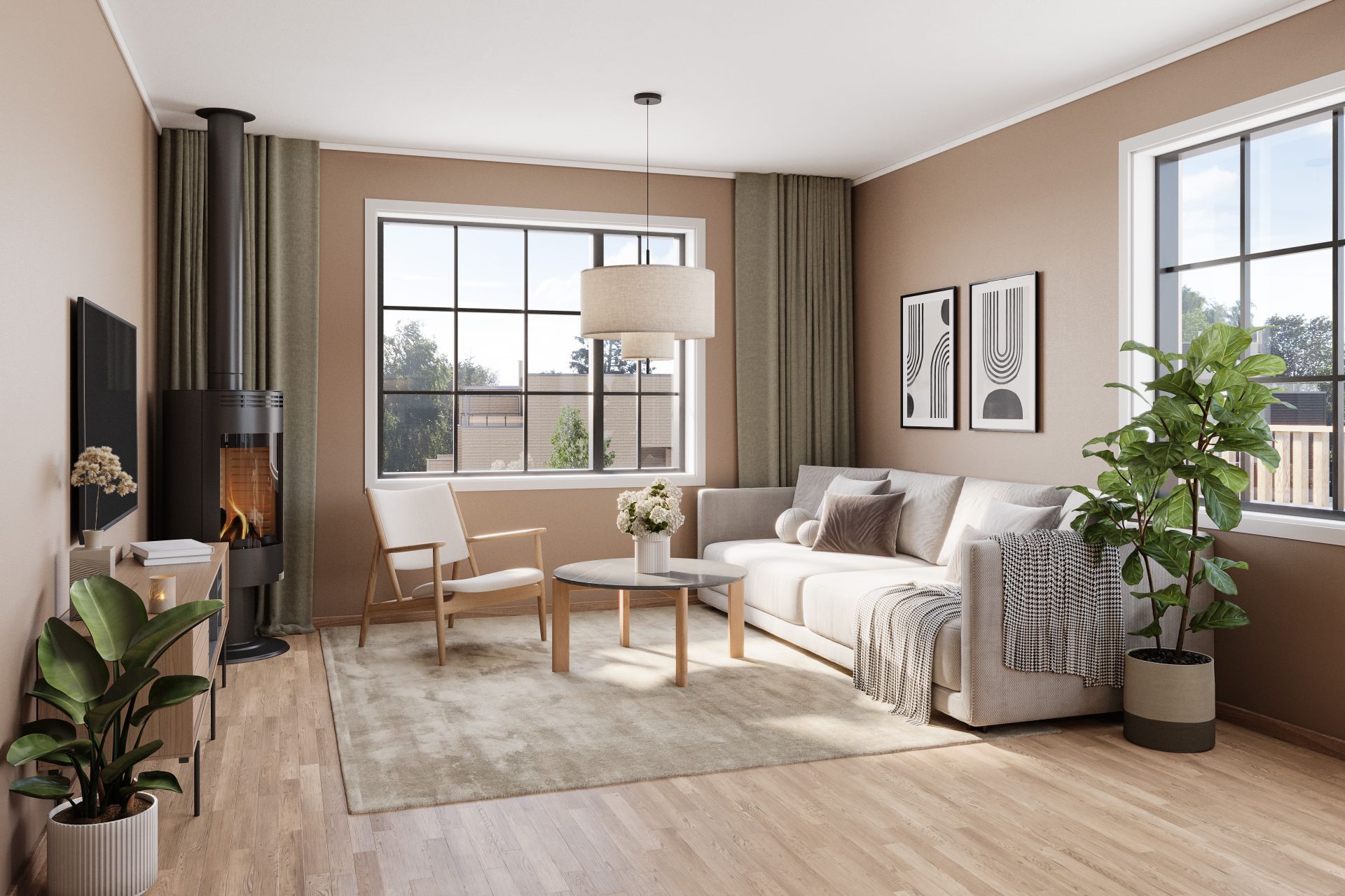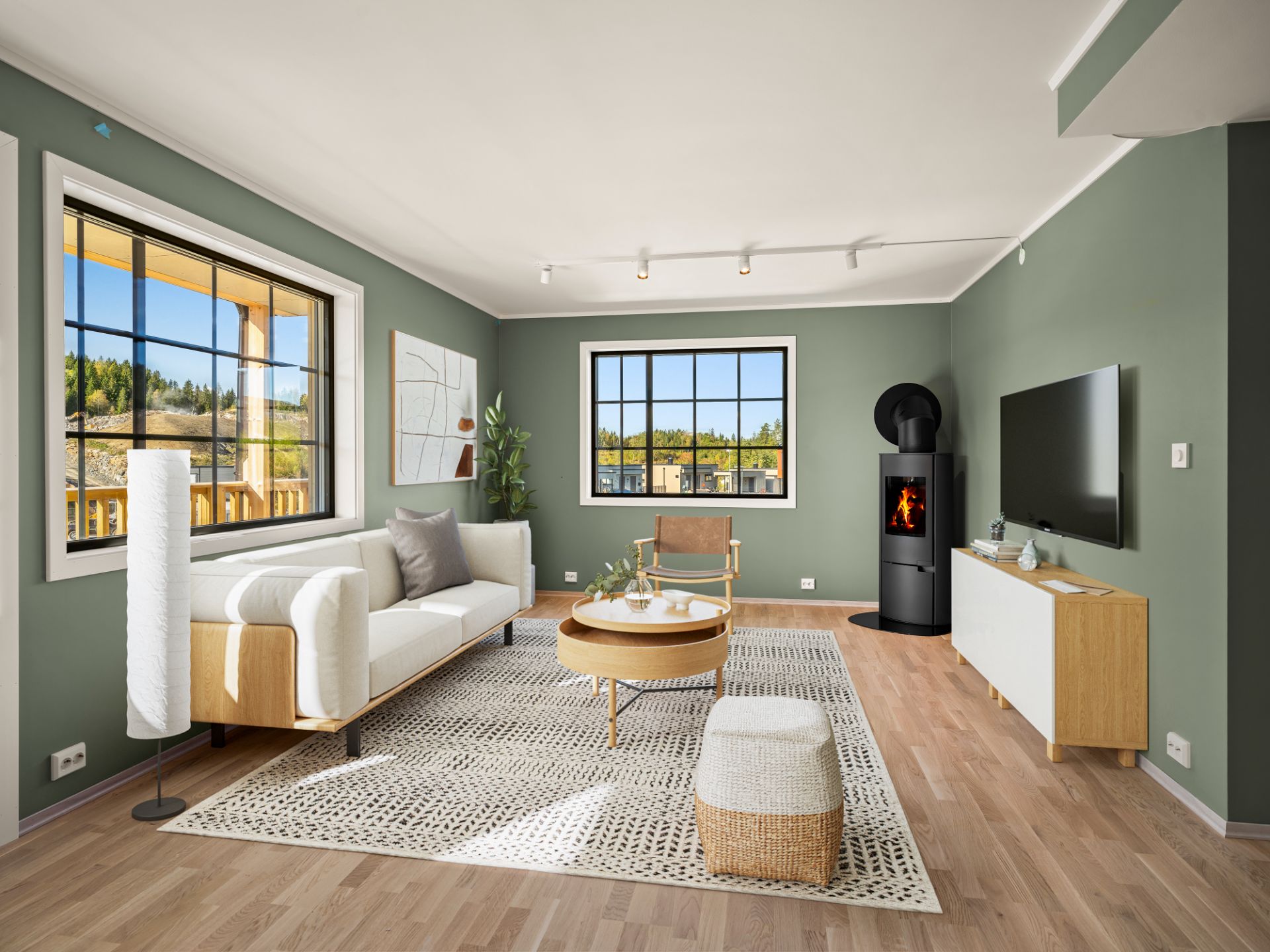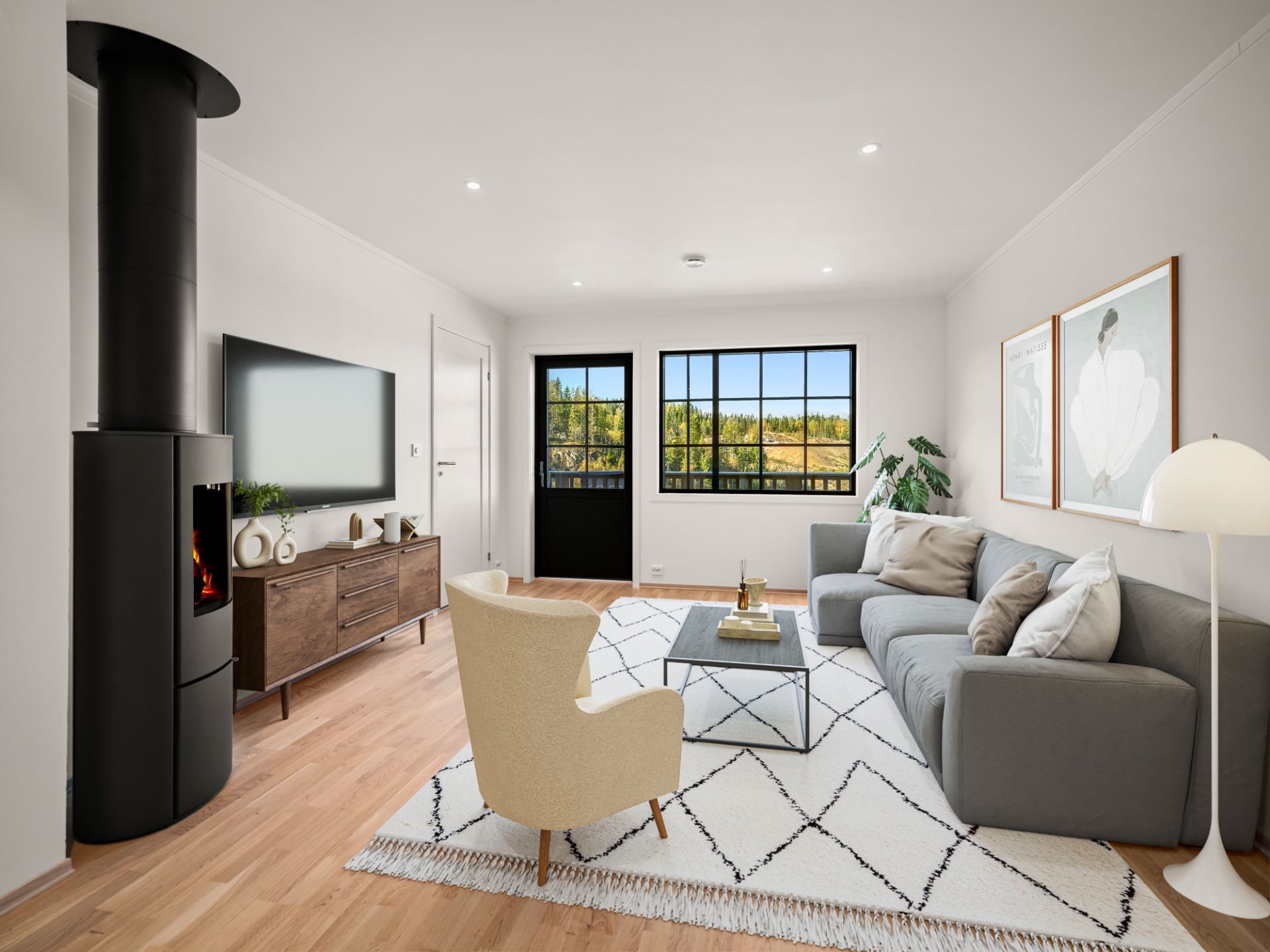 Eksempel: Kjøpesum 5.790.000,- / 579.000,- i egenkapital / rente 4,21 % per 01.05.2025. Etter avdragsfri periode er estimert månedlig kostnad kr. 18.312. Lånebeløp og vilkår kan variere. Eventuelle tilvalg må finansieres utenom.