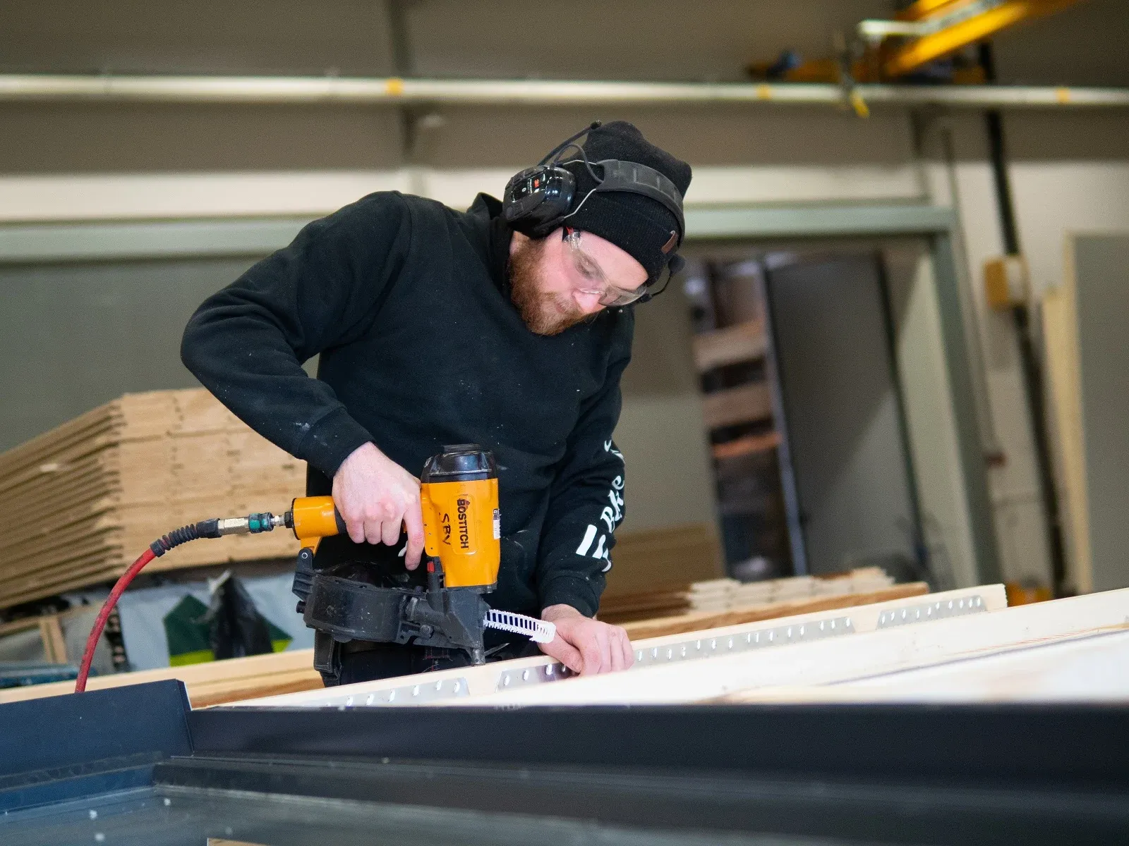 En annen miljøfordel med vår elementproduksjon er tidsaspekt rundt byggeprosessen. Stort sett trenger vi ikke mer enn en uke på å sette opp et helt hus. Det betyr at vi forkorter byggetiden og reduserer behovet for rigg, drift, transport osv. Totalt sett innebærer det mindre miljøbelastning fra byggeprosessen kontra mer tradisjonelle byggemetoder. Ved å bygge elementene innendørs i et tørt miljø og frakte dem godt emballert til byggeplass, reduserer vi også behovet for uttørking av bygget. Det gir en besparelse i energibruk.