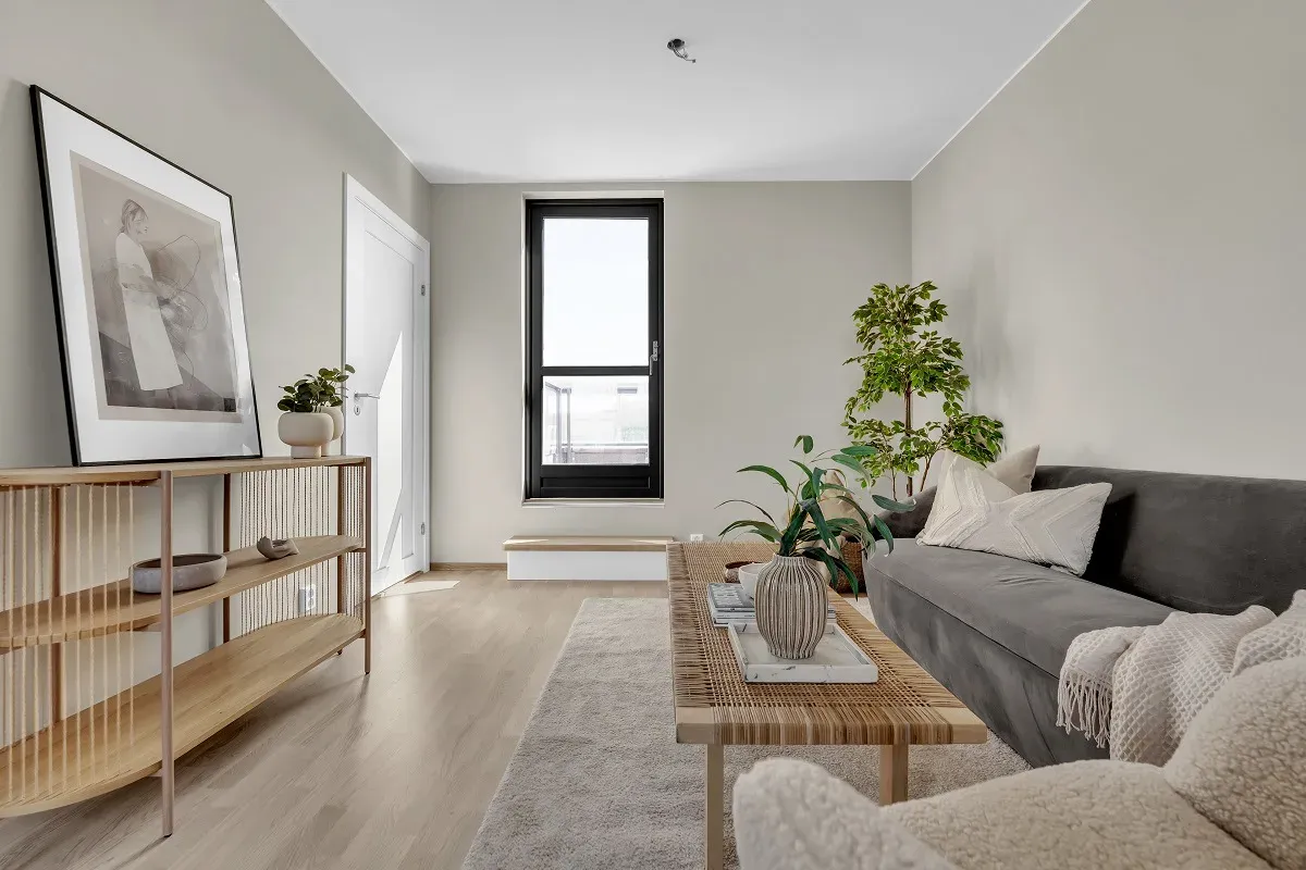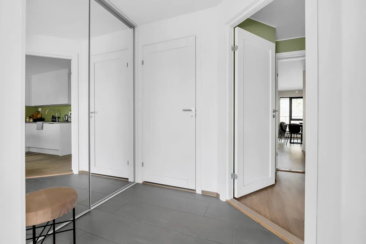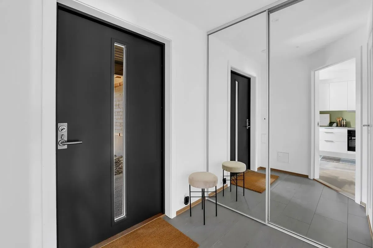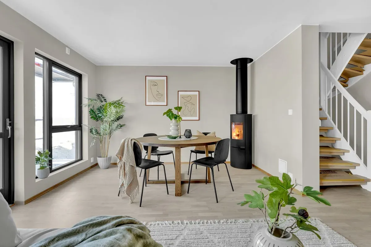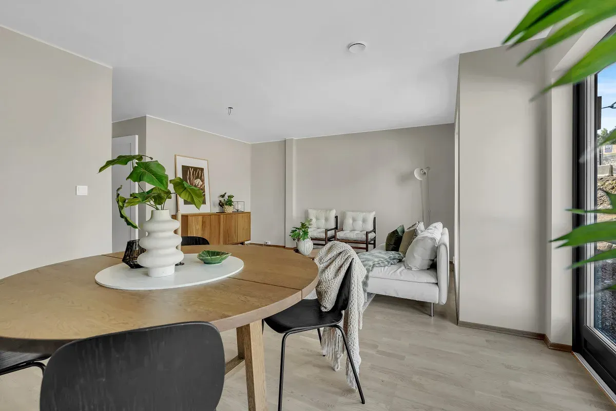 Vi har ikke en klar innredet bolig for øyeblikket her i Lørenfallet hage, men du kan se nærmere på en ferdigstilt bolig på de fine fotoene under. Dette er en tilsvarende bolig som 43 og 45 som er tilsalgs i nåværende stund. Disse har en flott, solrik beliggenhet på feltet.