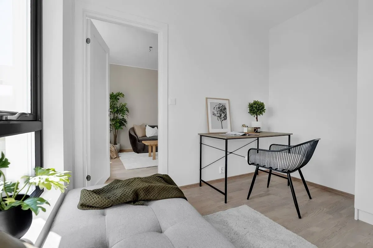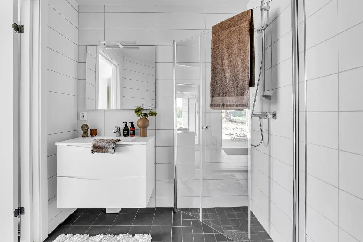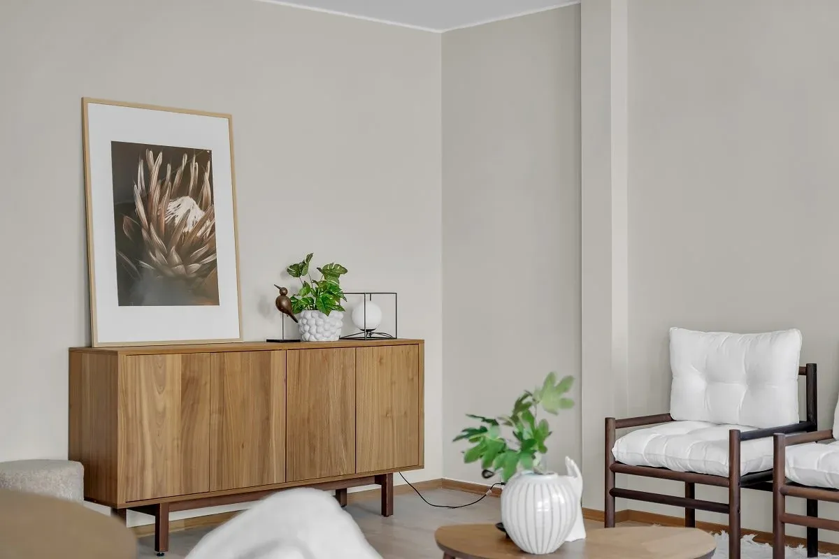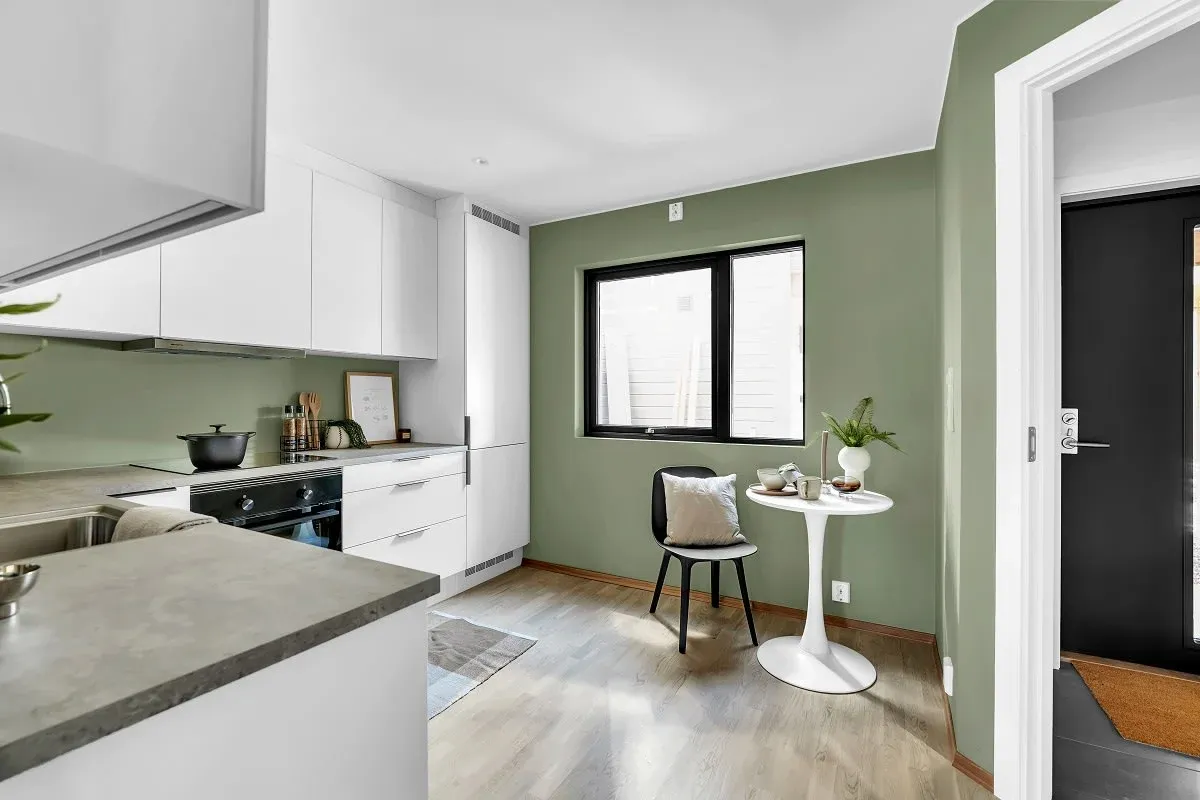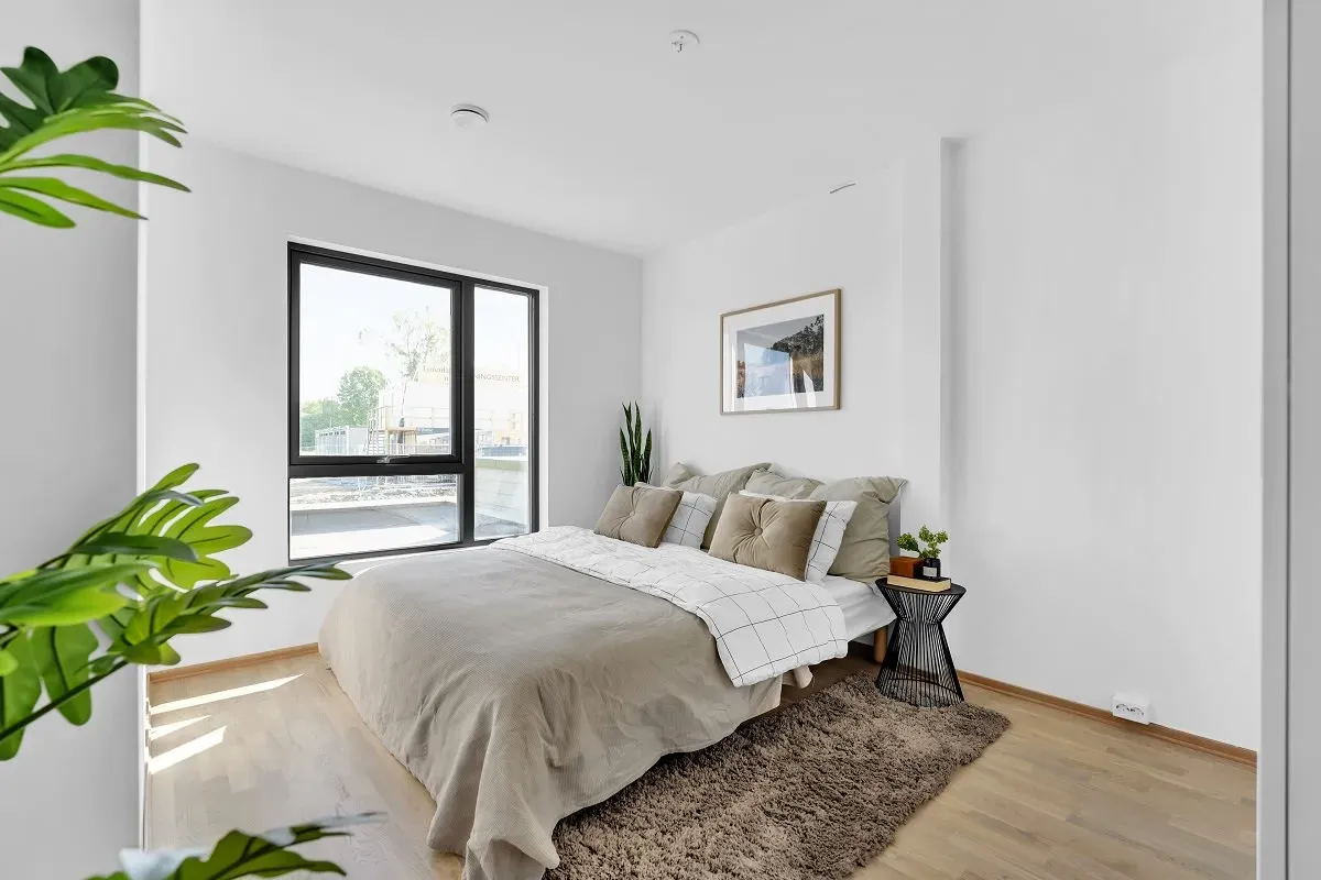 Vi har ikke en klar innredet bolig for øyeblikket her i Lørenfallet hage, men du kan se nærmere på en ferdigstilt bolig på de fine fotoene under. Dette er en tilsvarende bolig som 43 og 45 som er tilsalgs i nåværende stund. Disse har en flott, solrik beliggenhet på feltet.