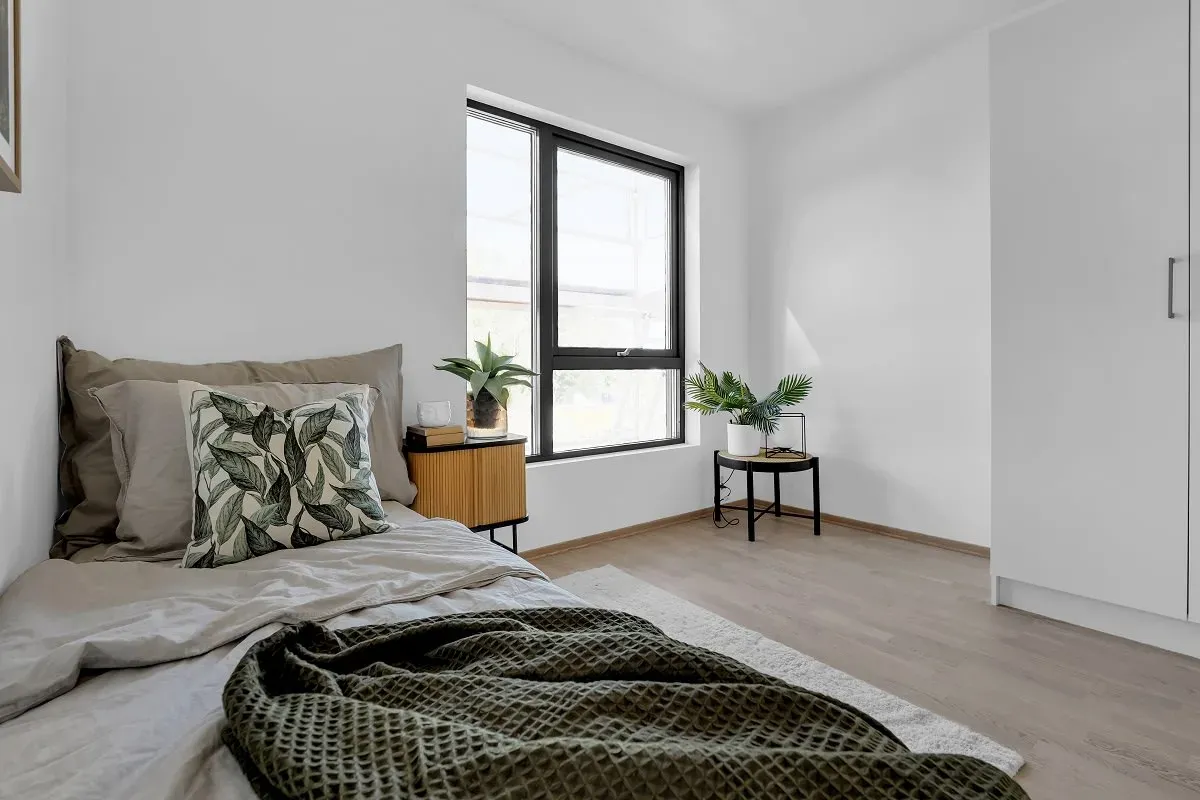 Bolig 43 og 45 er en fin boligmodell med gode kvaliteter. Boligene leveres komplett med kjøkken fra kvalitetsleverandøren HTH med alle hvitevarer inkludert, samt peisovn og ferdigplen.