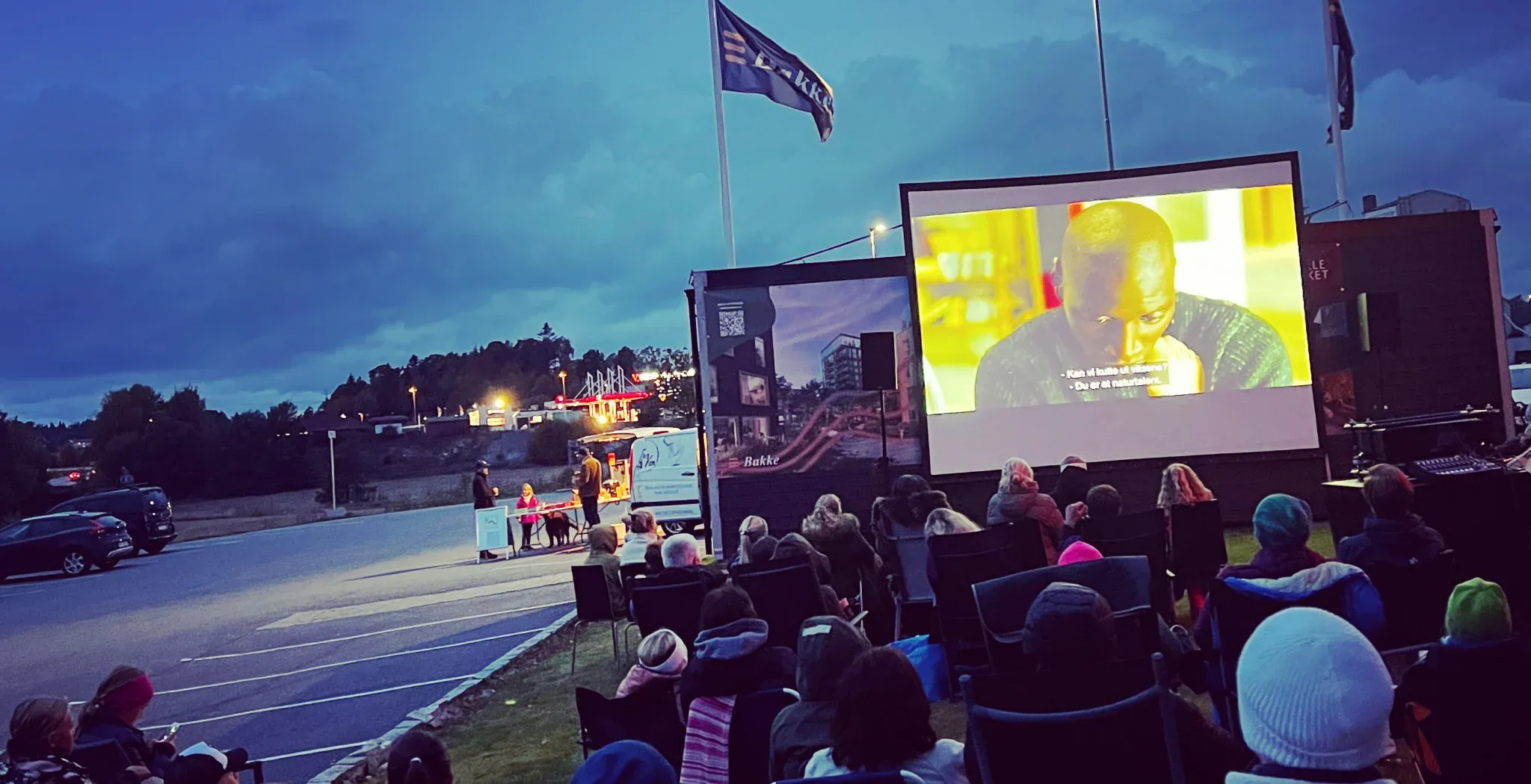 Søndag 25. september inviterte vi til utekino ved det som skal bli det nye Møllestrøket i Vestby. Mange Vestbybeboere hadde tatt med seg stol og varme tepper for å kose seg med film i høstmørket sammen med venner eller familie.