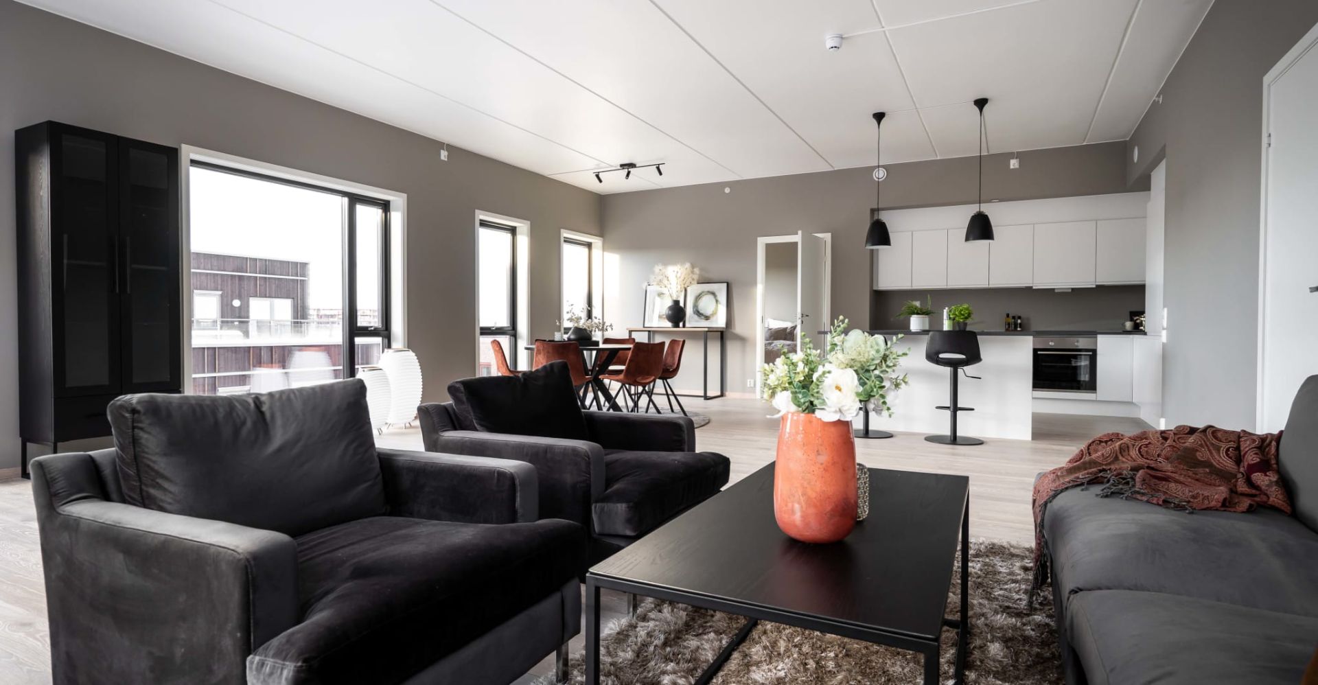 Leilighetene reflekterer de samme verdiene – lyse, luftige rom som skaper ulike soner og fleksibiliteten du trenger for ulike situasjoner. «Hjem du vil hjem til» til er en leveregel Bakke virkelig tar på alvor», sier arkitekten Audun til slutt.