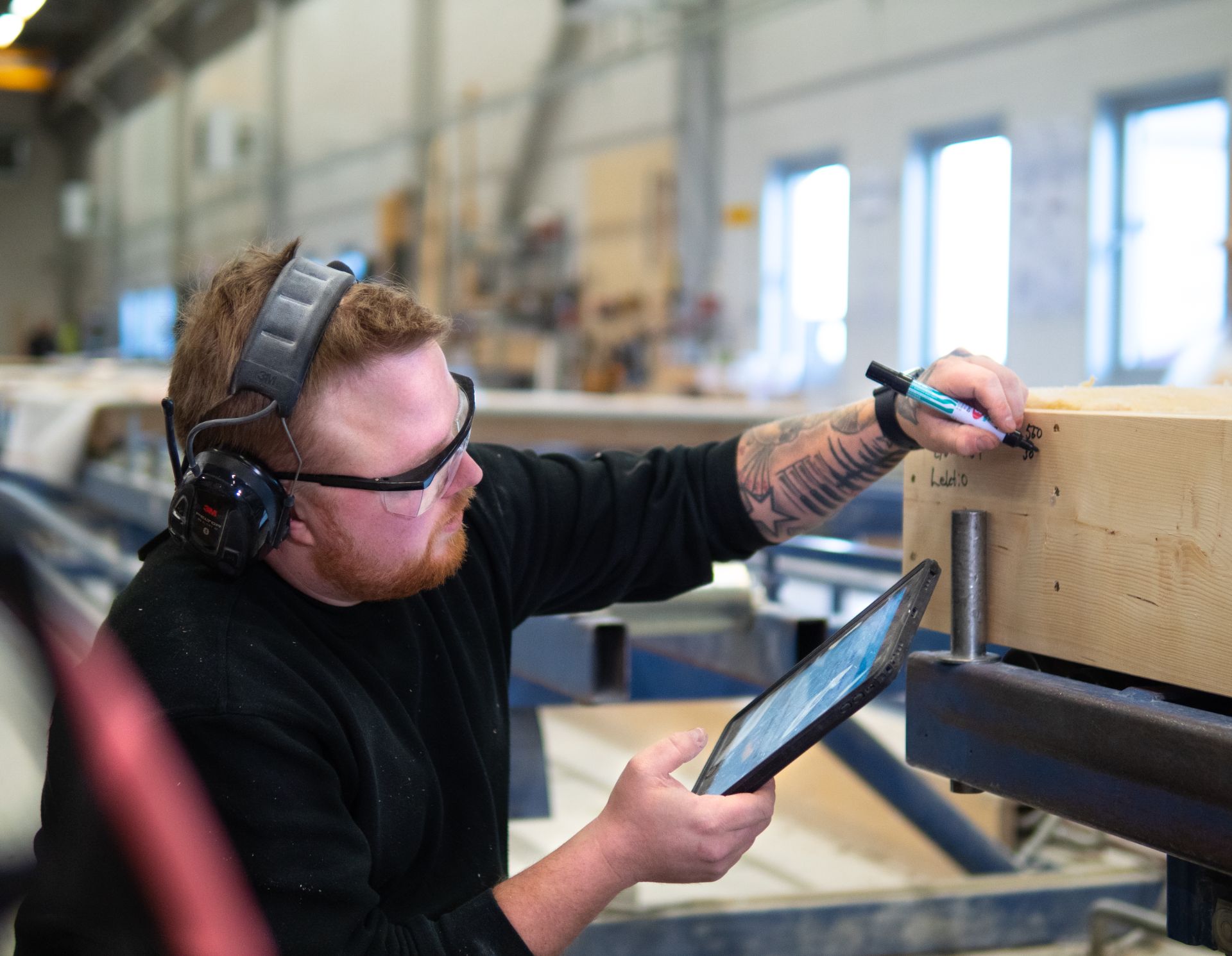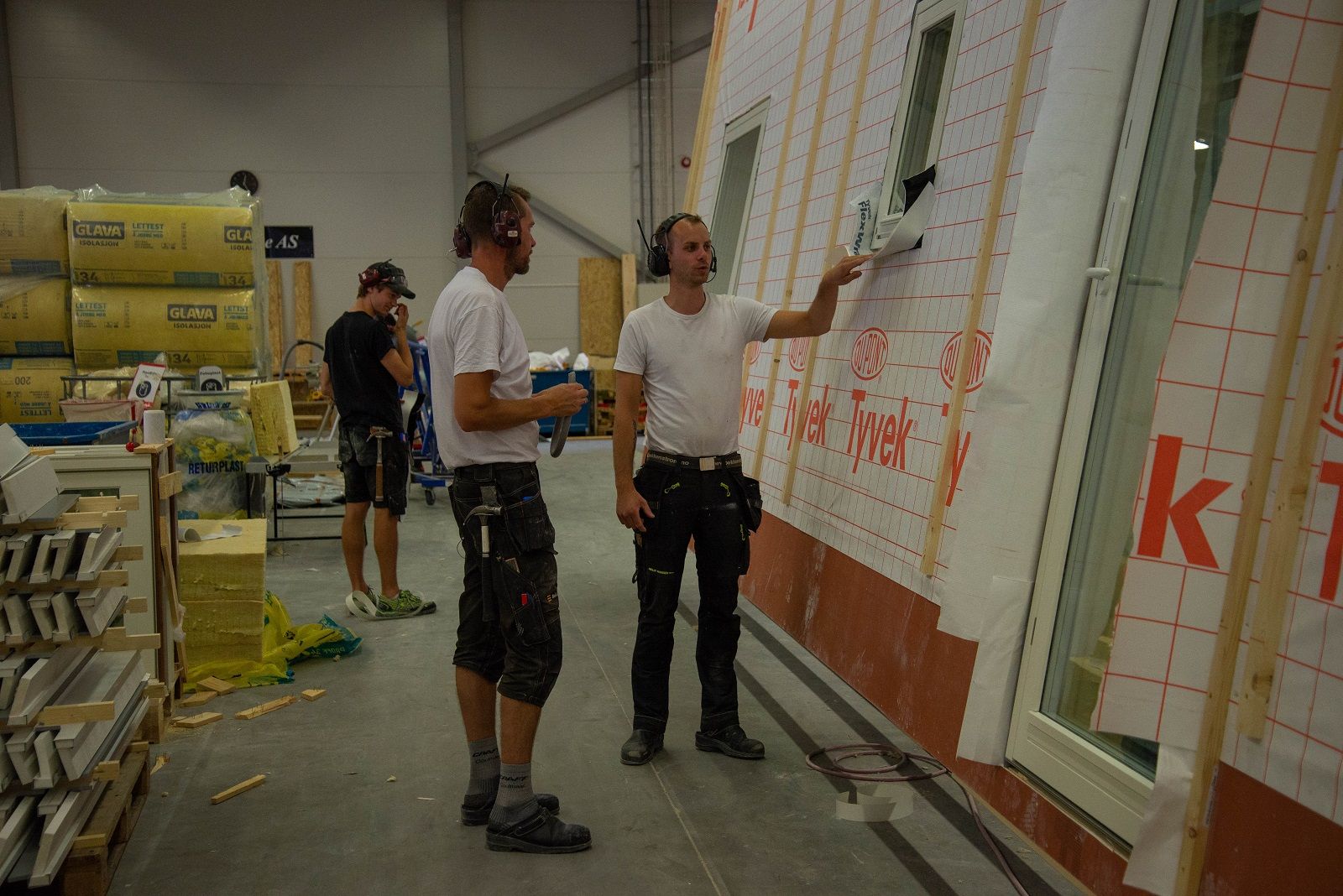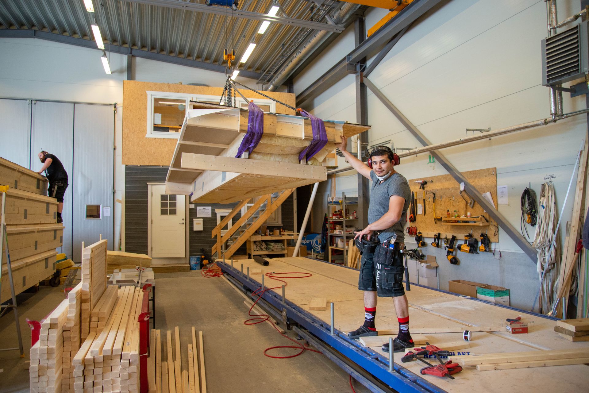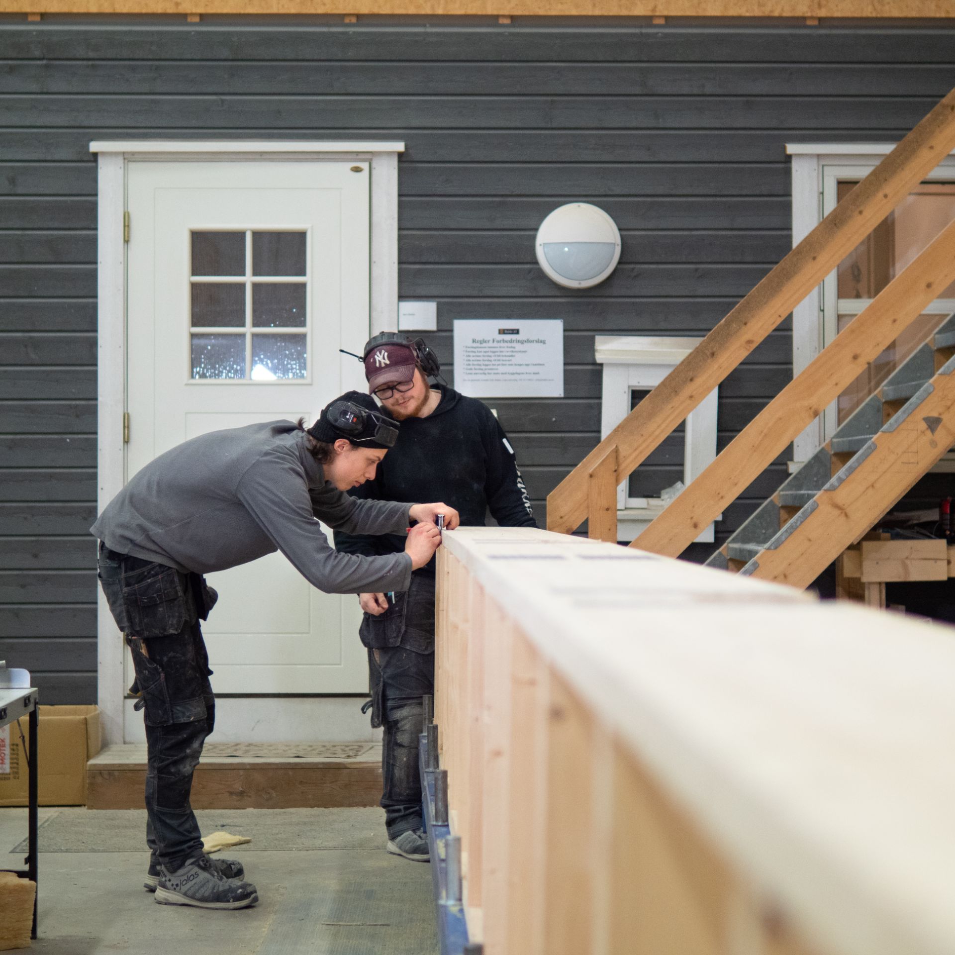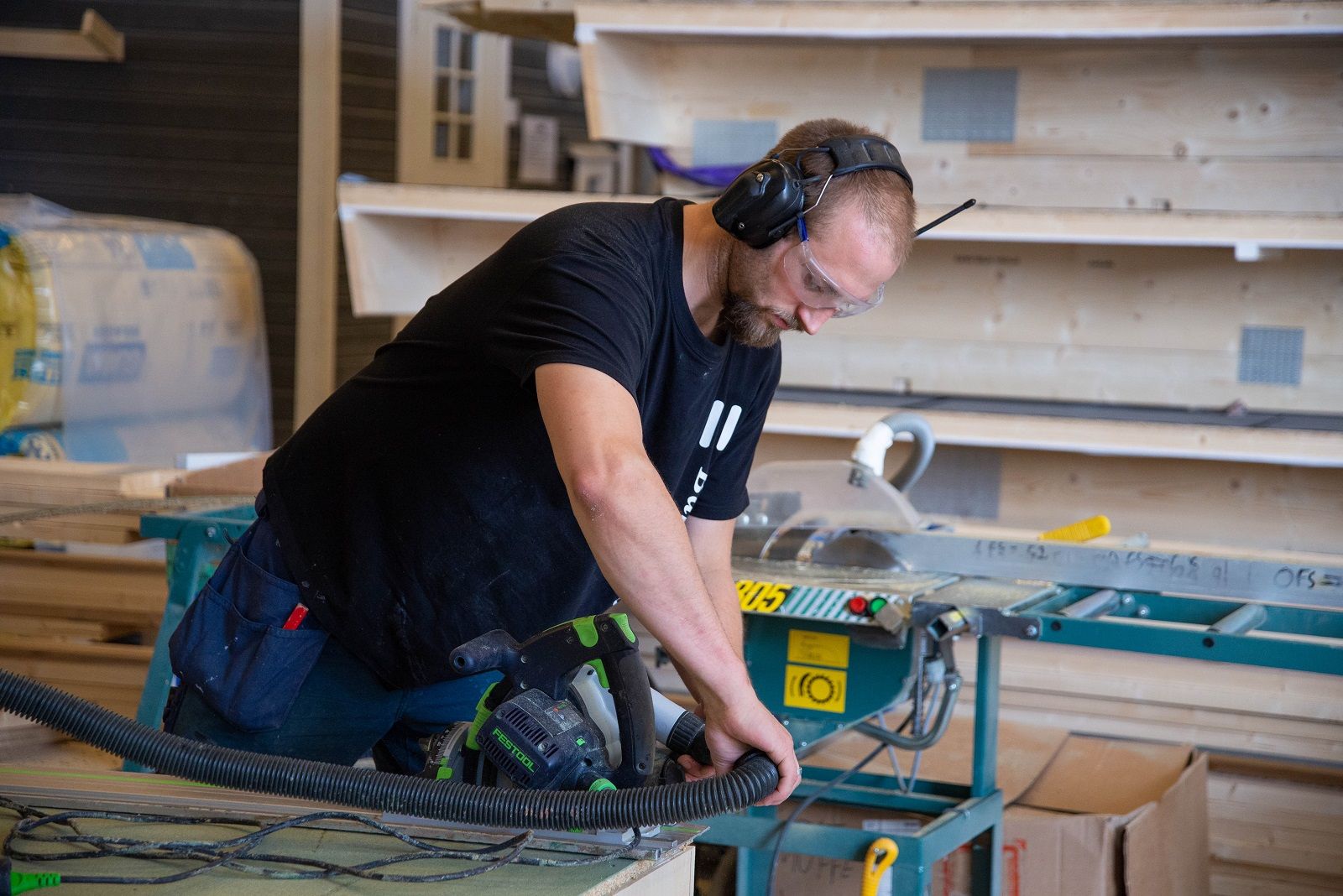 Huselementene i produksjonen er ferdige til montering når de leveres på byggeplass, ergo blir det nærmest ikke et eneste kapp til overs. I vår elementproduksjon er vi opptatt av å optimalisere husproduksjonen og oppnå best mulig materialutnyttelse for å unngå svinn.