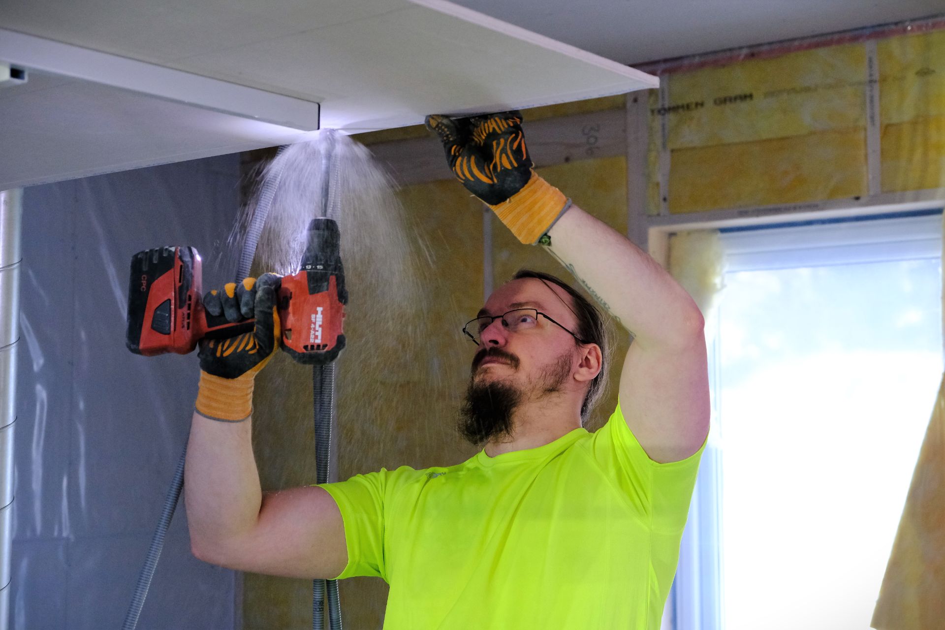 Det som blir av kapp på fabrikken, brukes blant annet til CO₂-nøytral oppvarming av våre egne kontor- og produksjonslokaler. Vi gjenvinner alt av plast og gipsavkapp, og vi har gode returordninger for isolasjon.